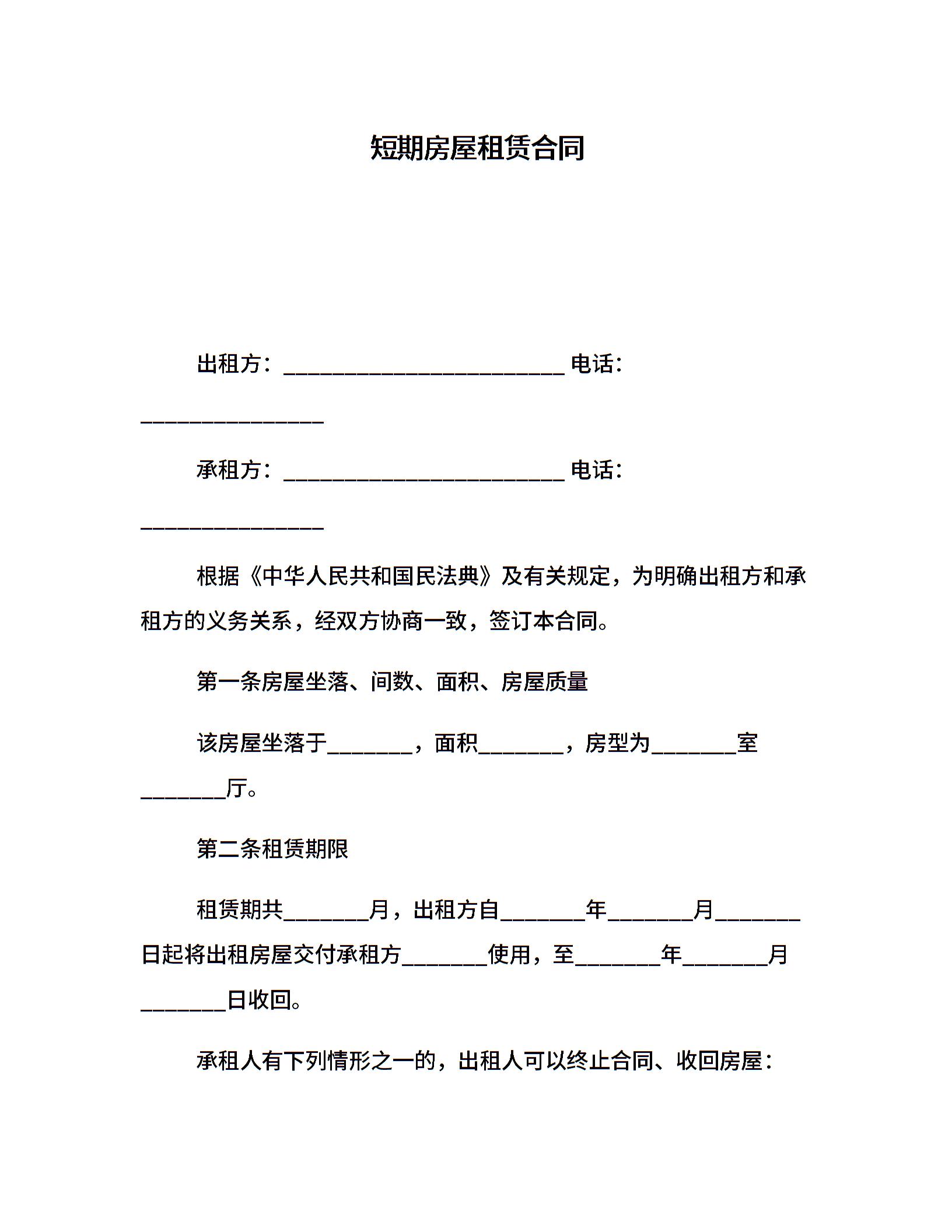 短期房屋租赁合同