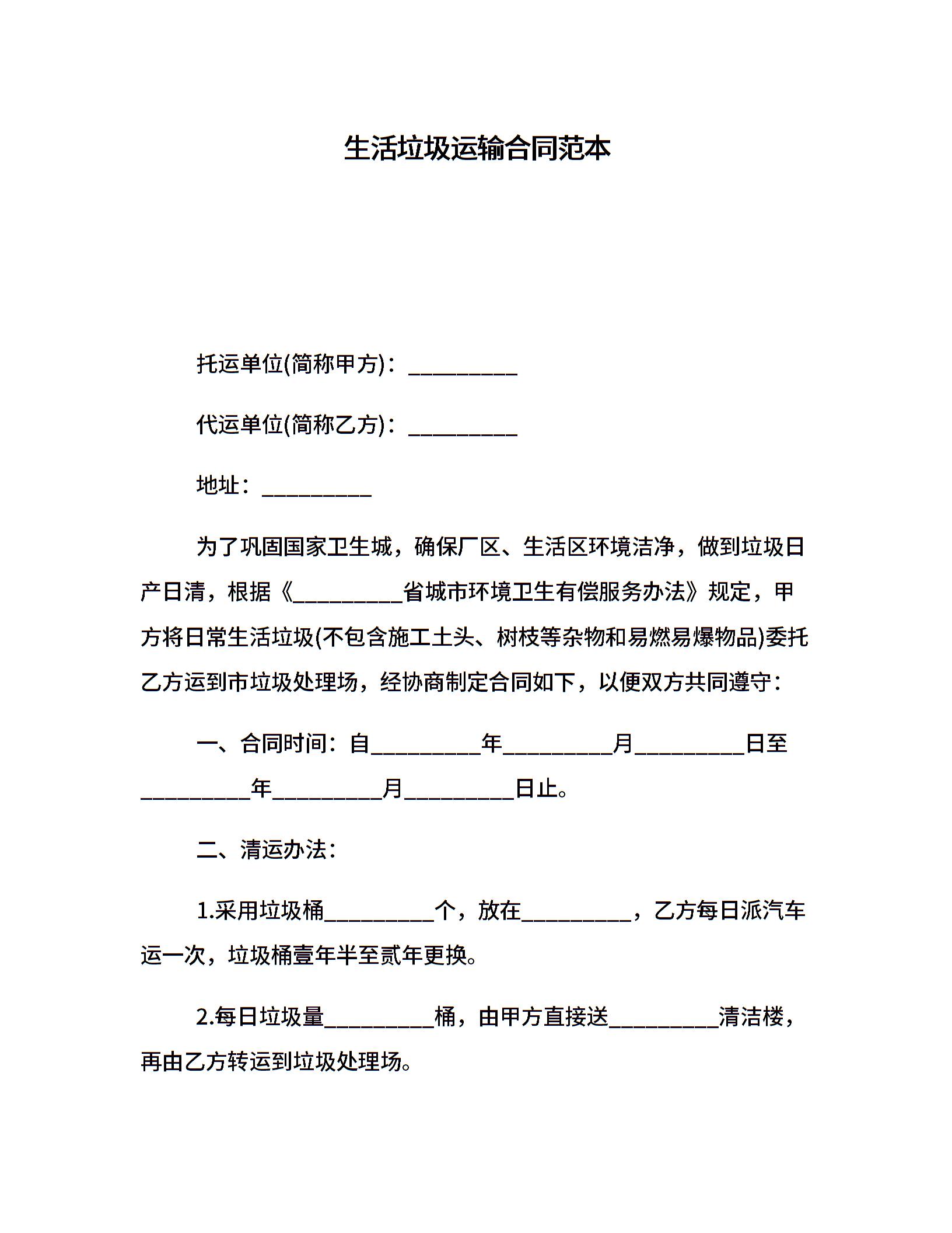 生活垃圾运输合同范本