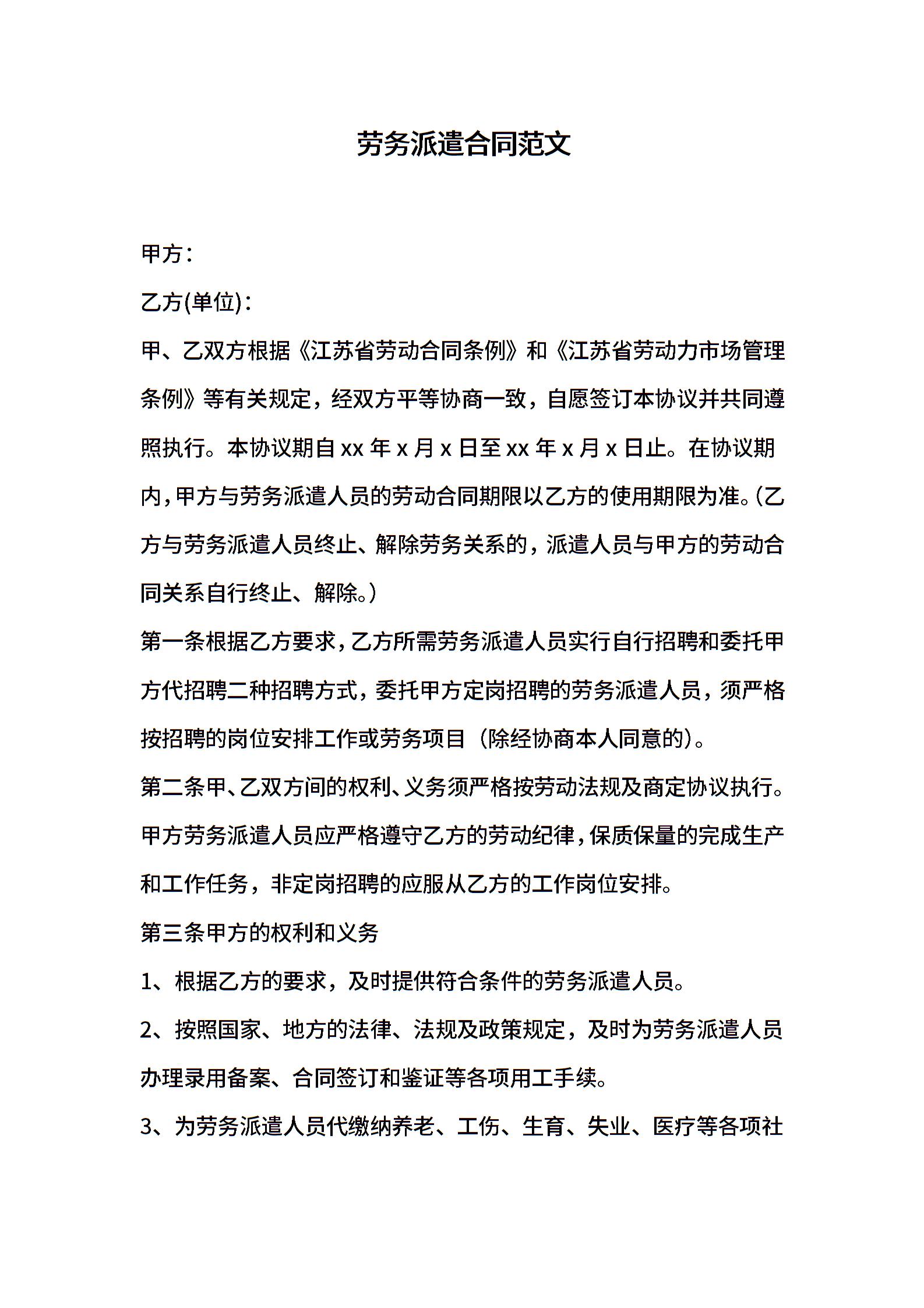 劳务派遣合同范文