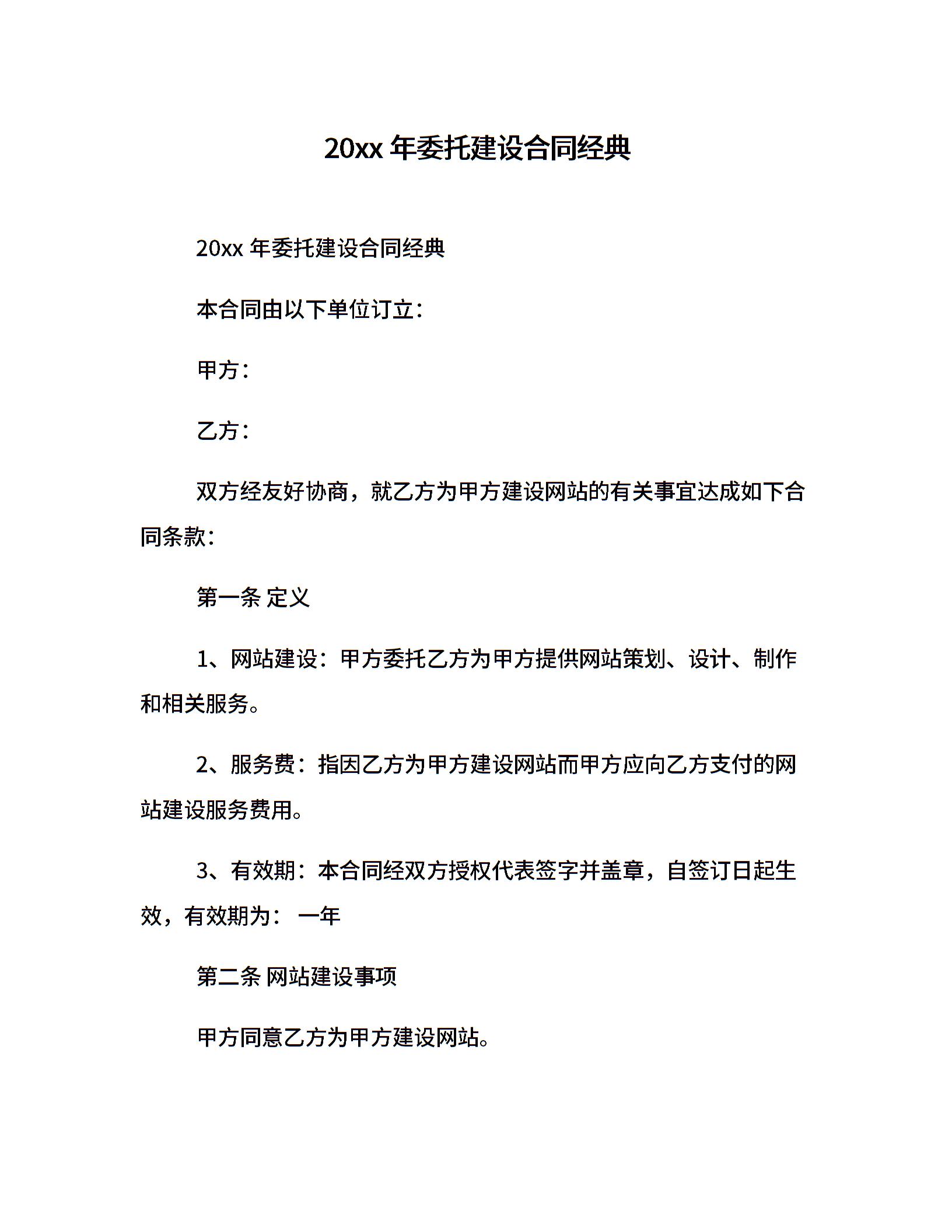 20xx年委托建设合同经典