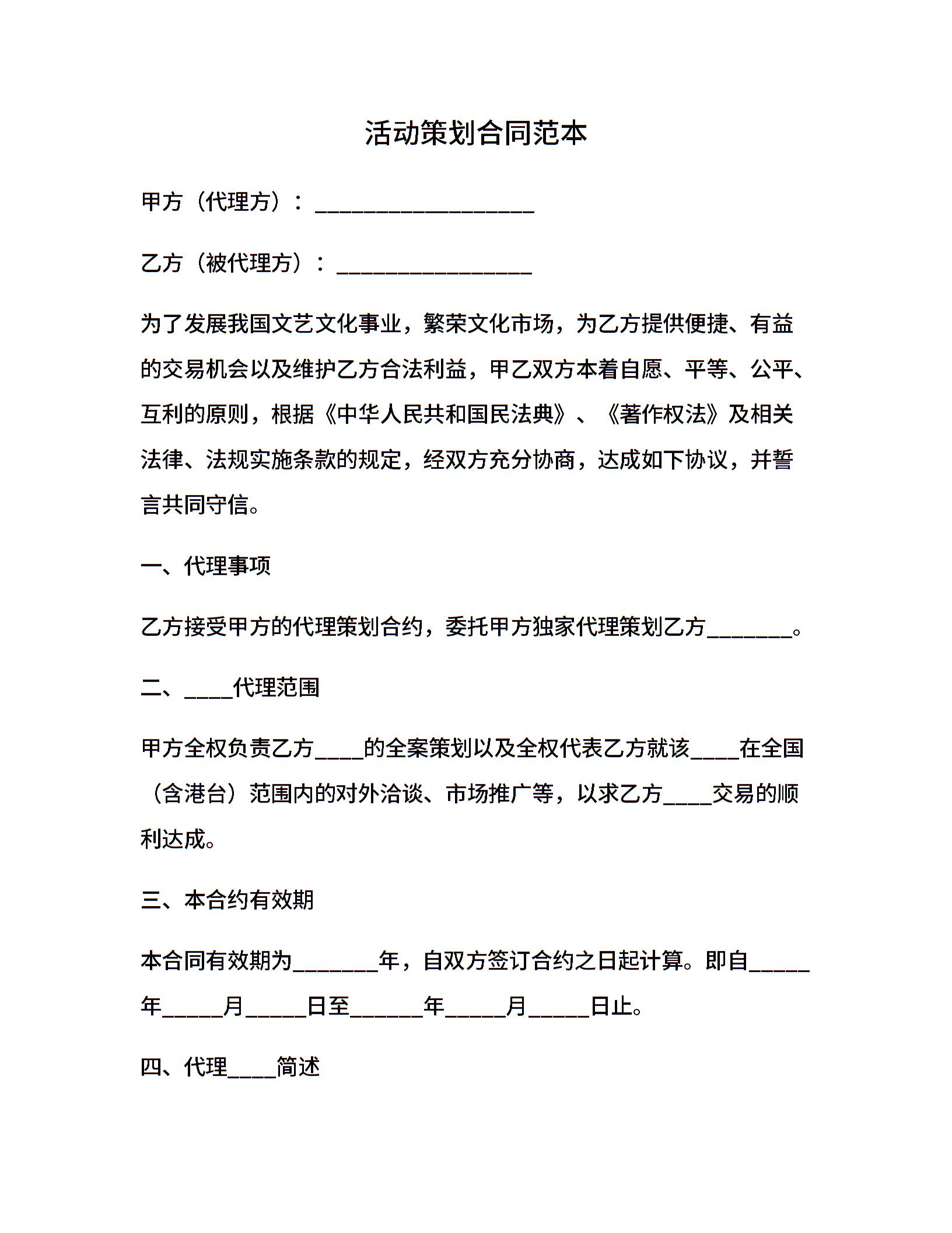 活动策划合同范本