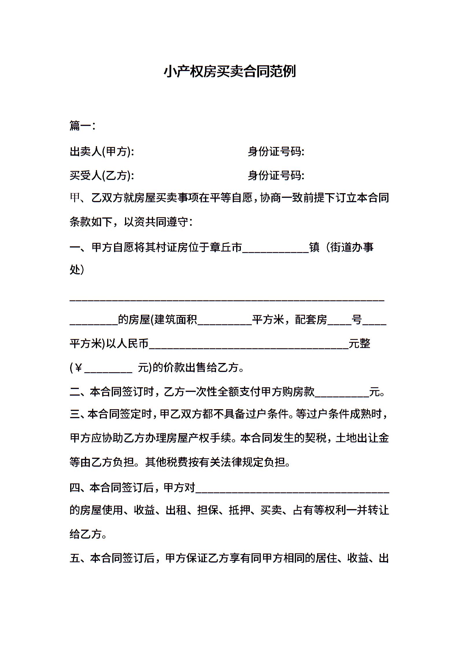 小产权房买卖合同范例