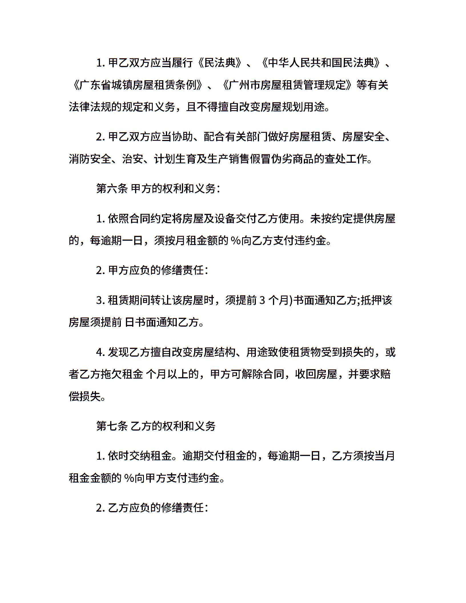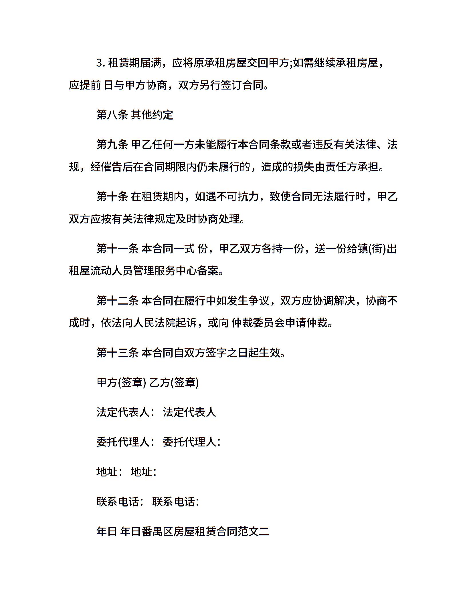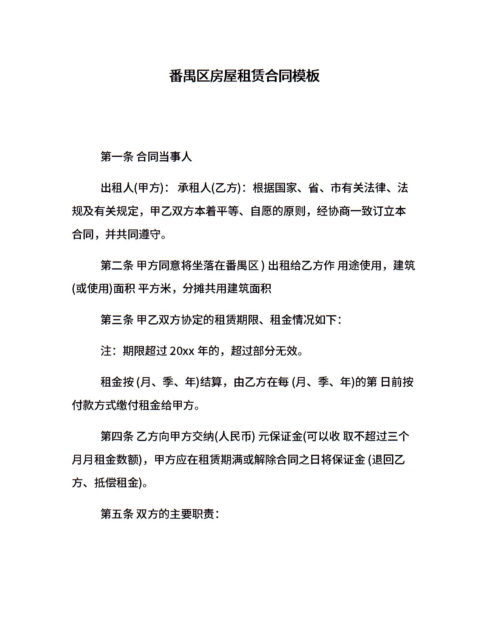 番禺区房屋租赁合同模板