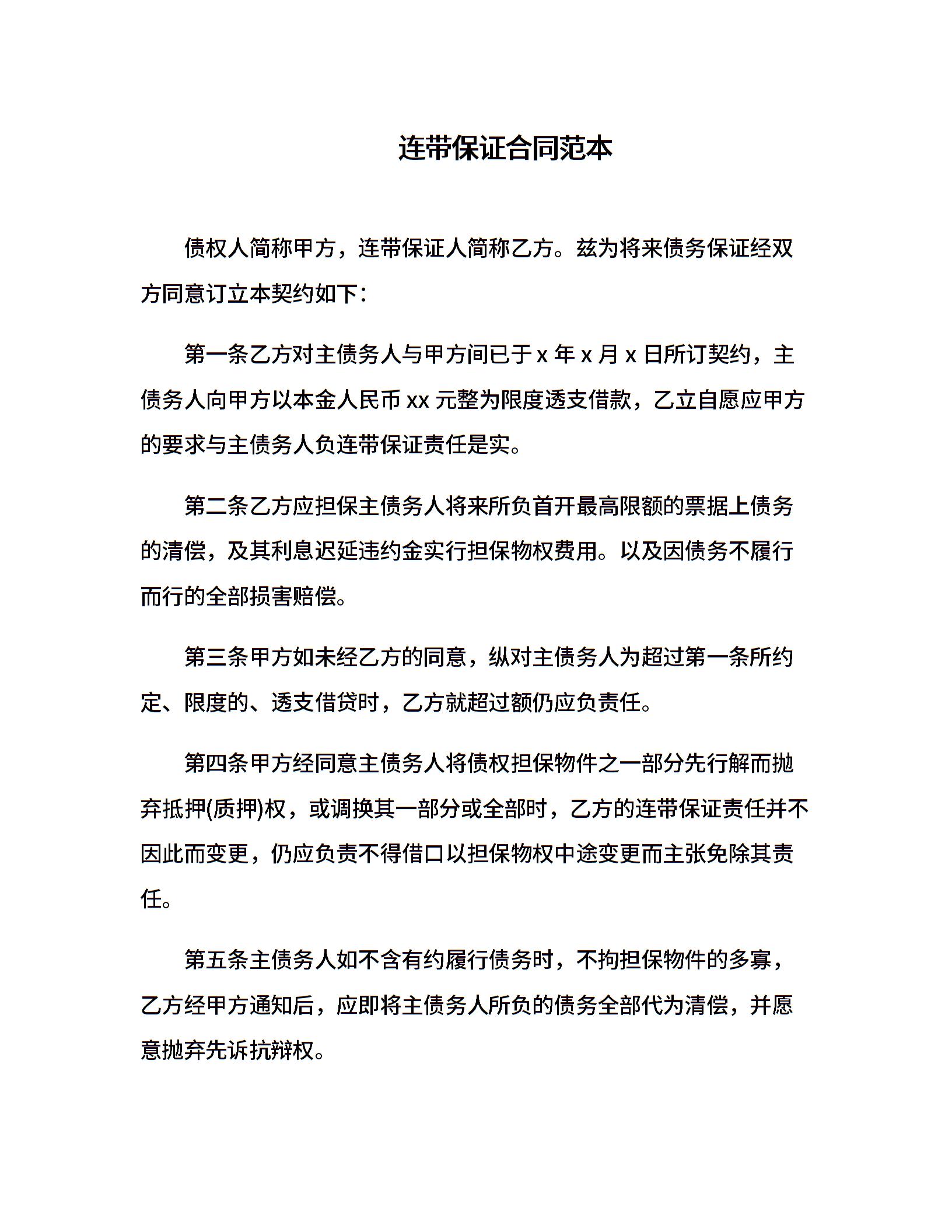 连带保证合同范本