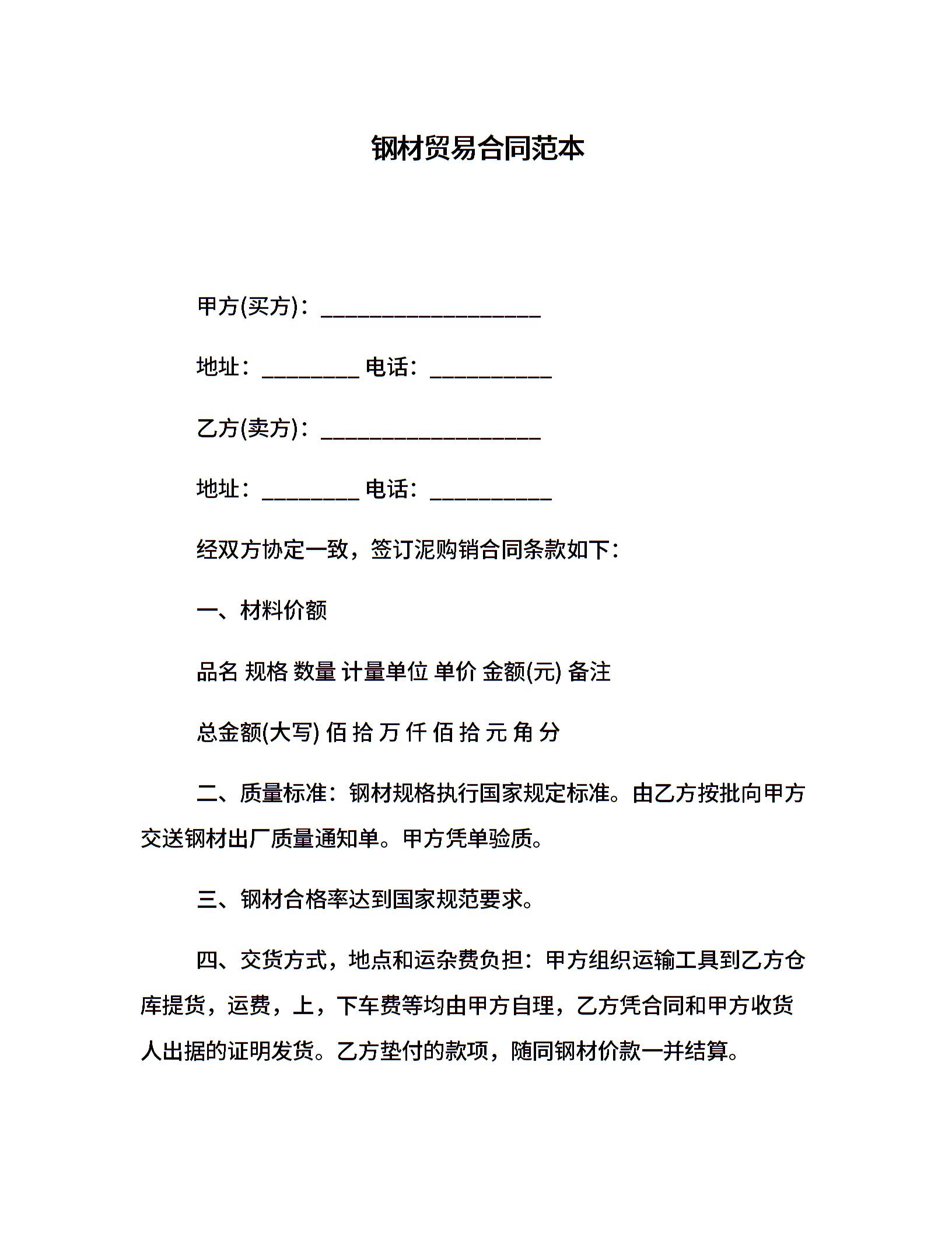 钢材贸易合同范本