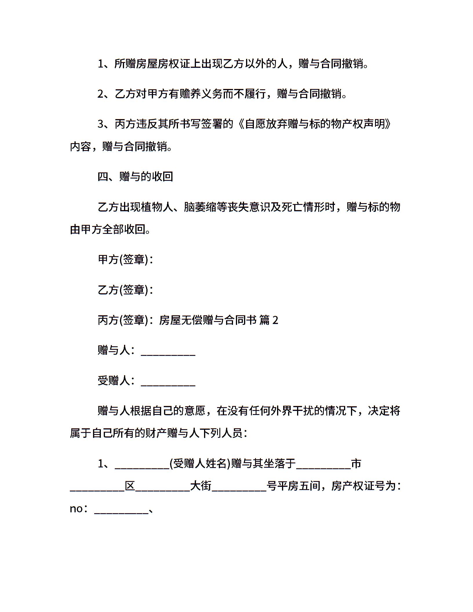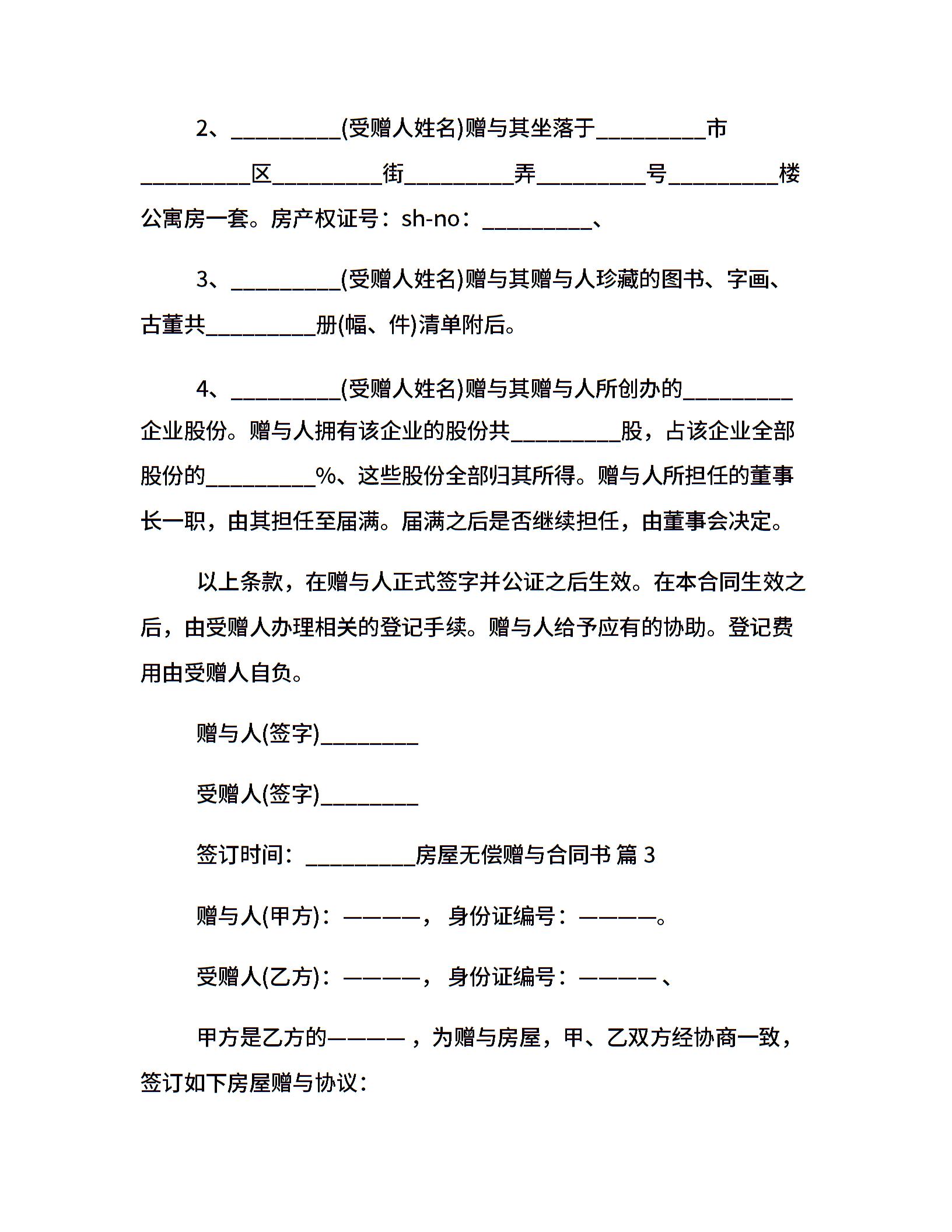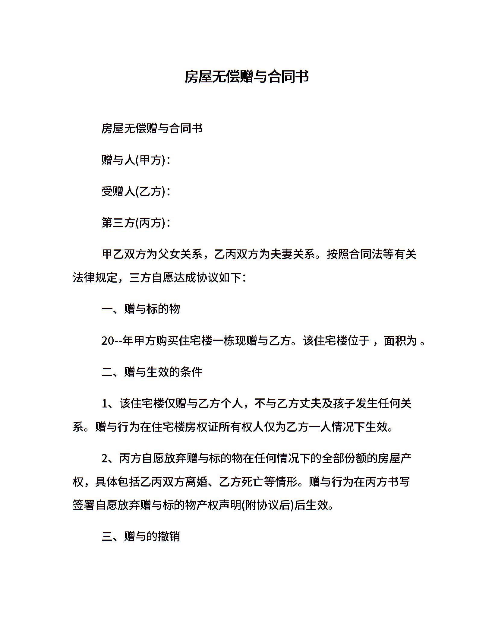 房屋无偿赠与合同书