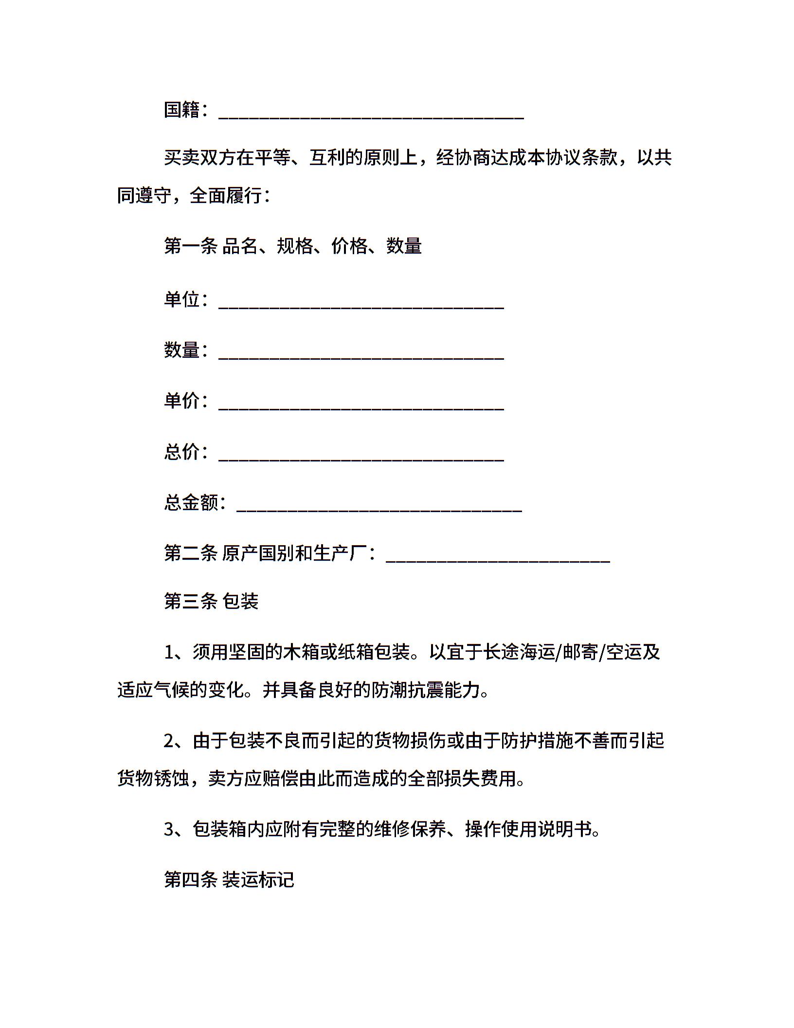 当前位置:量子办公 > 合同模板 > 贸易合同 >