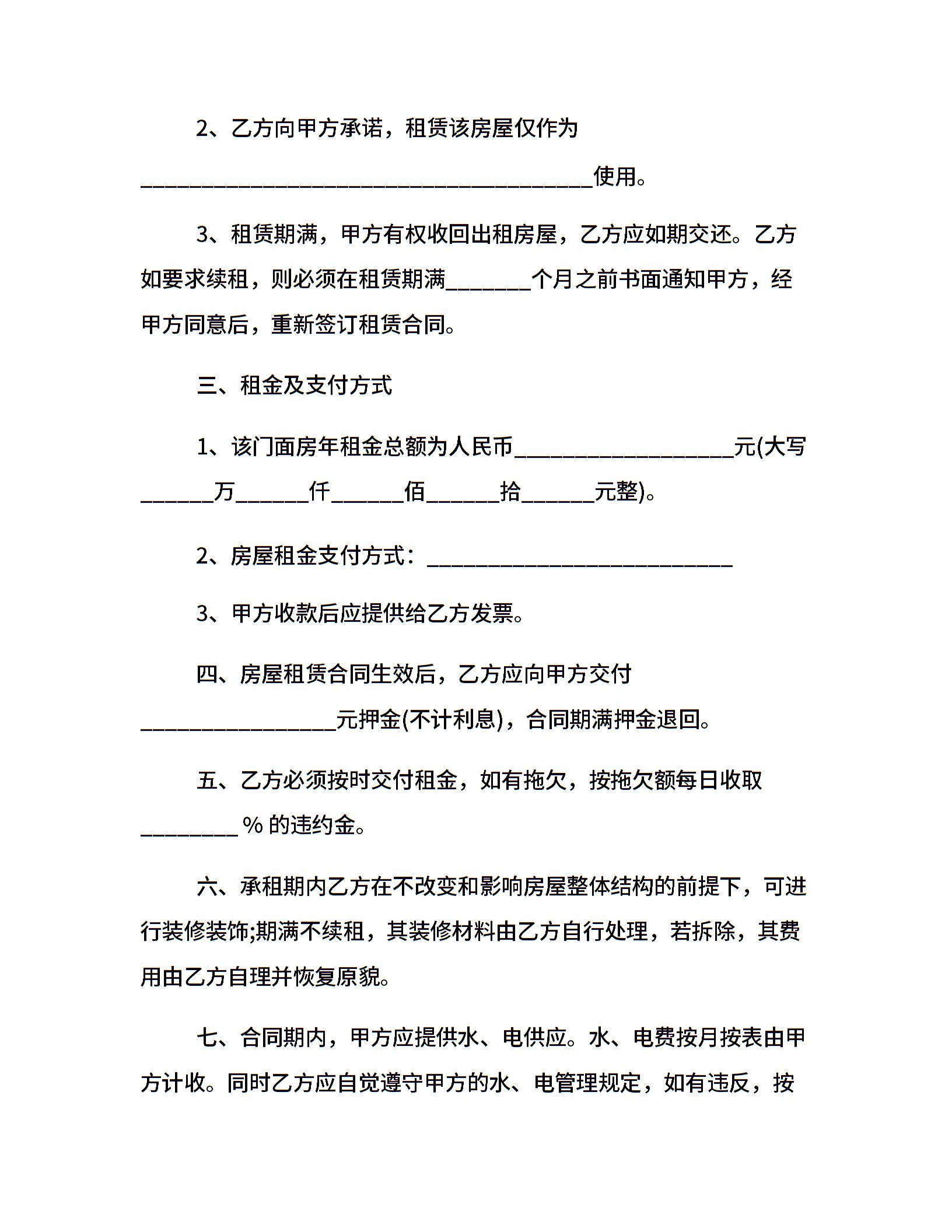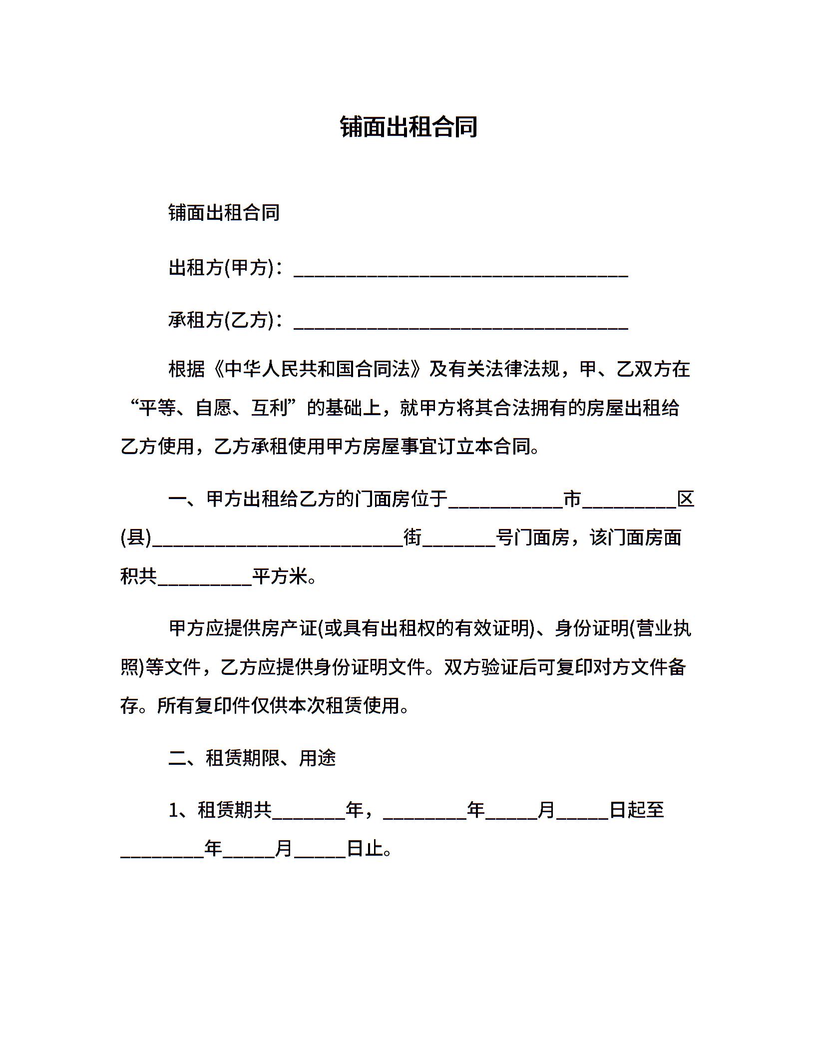 铺面出租合同