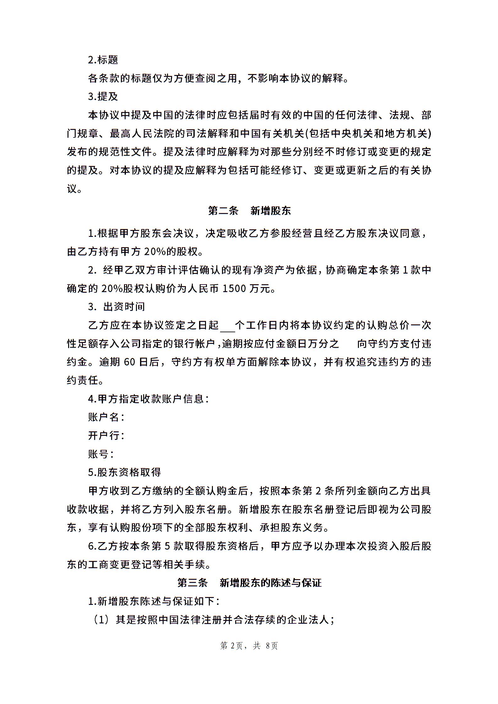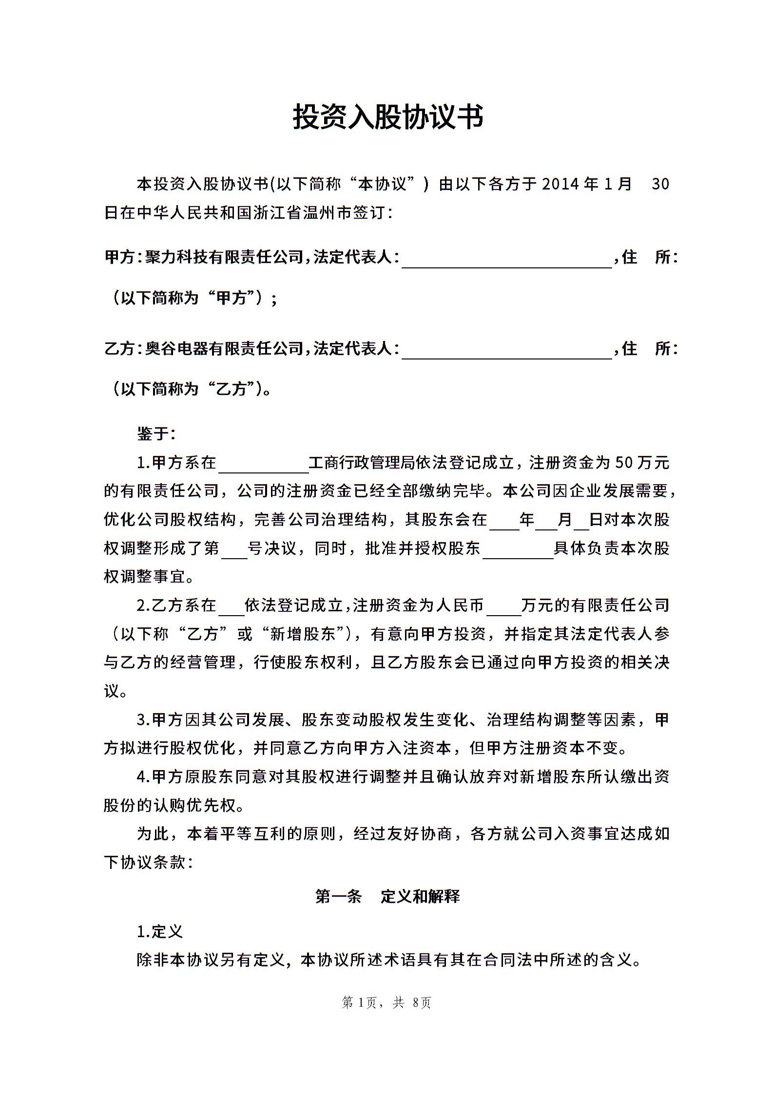 投资入股协议书2014.028