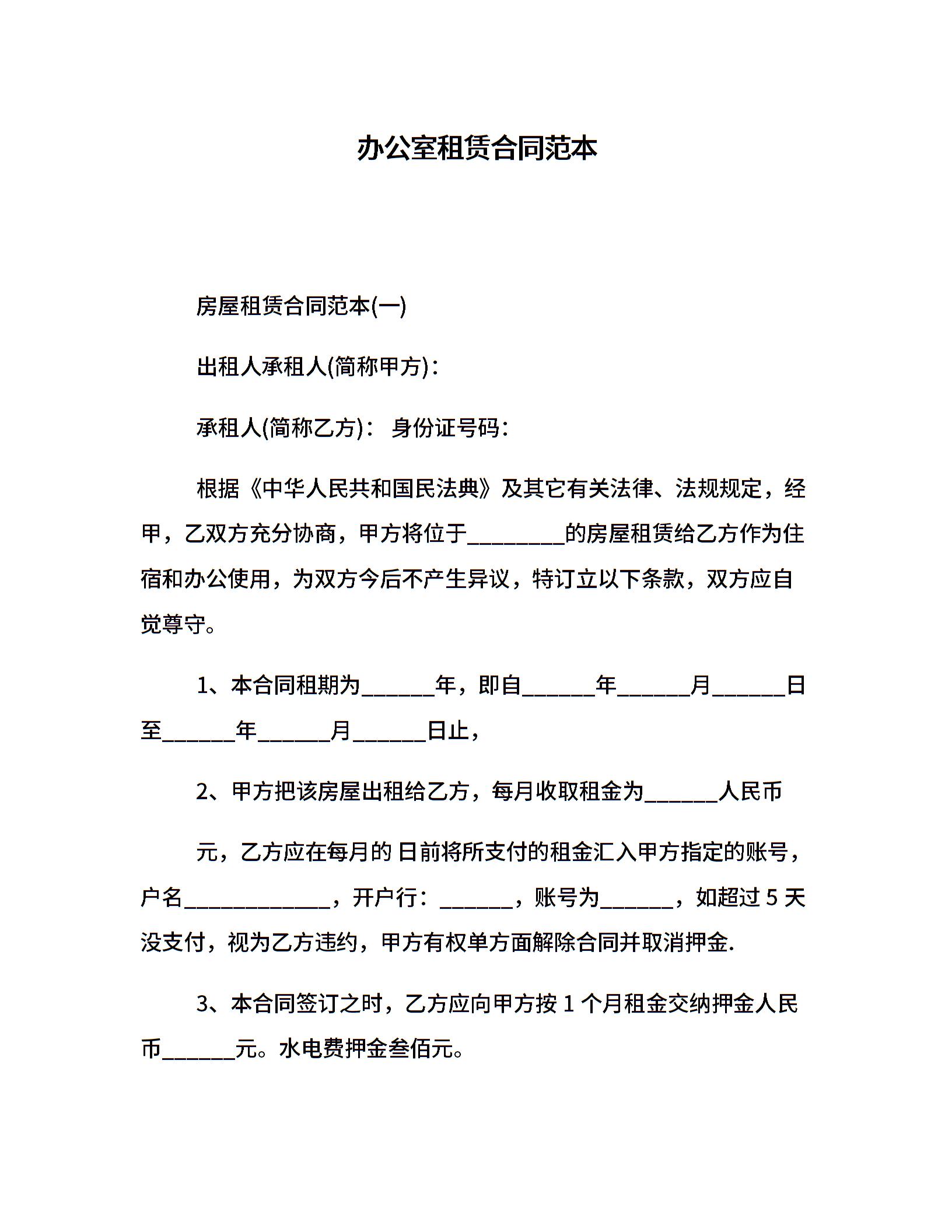 办公室租赁合同范本