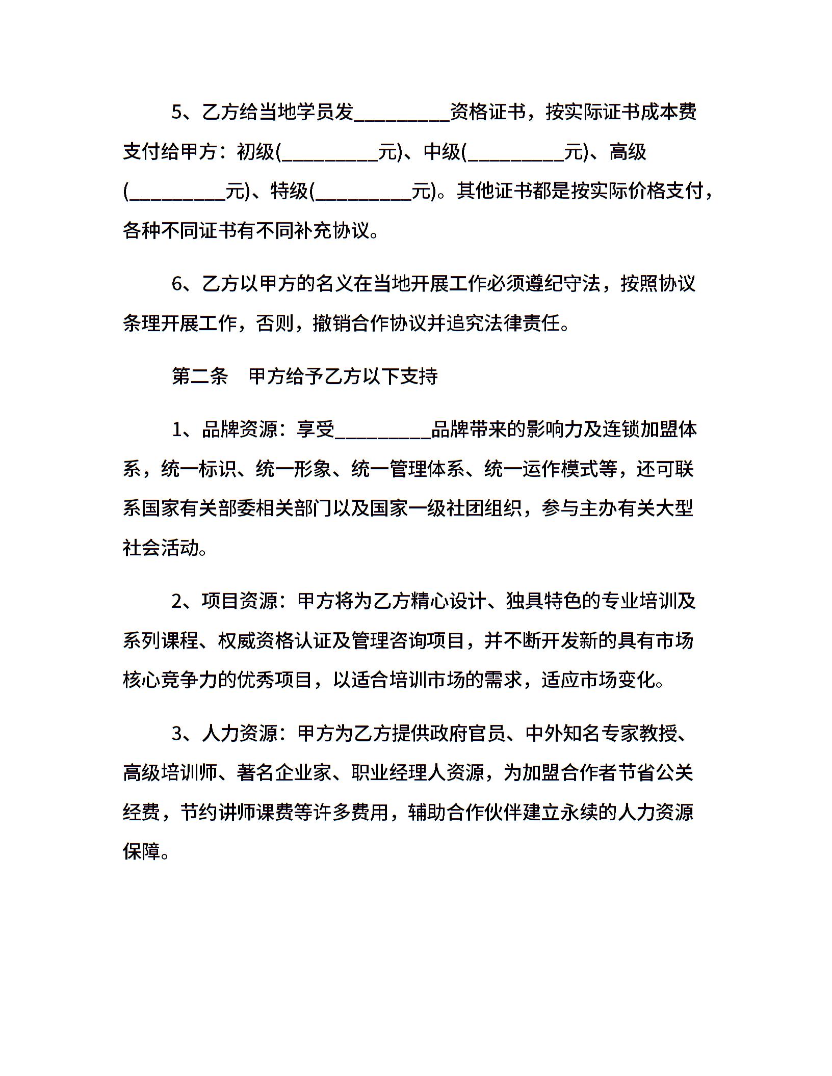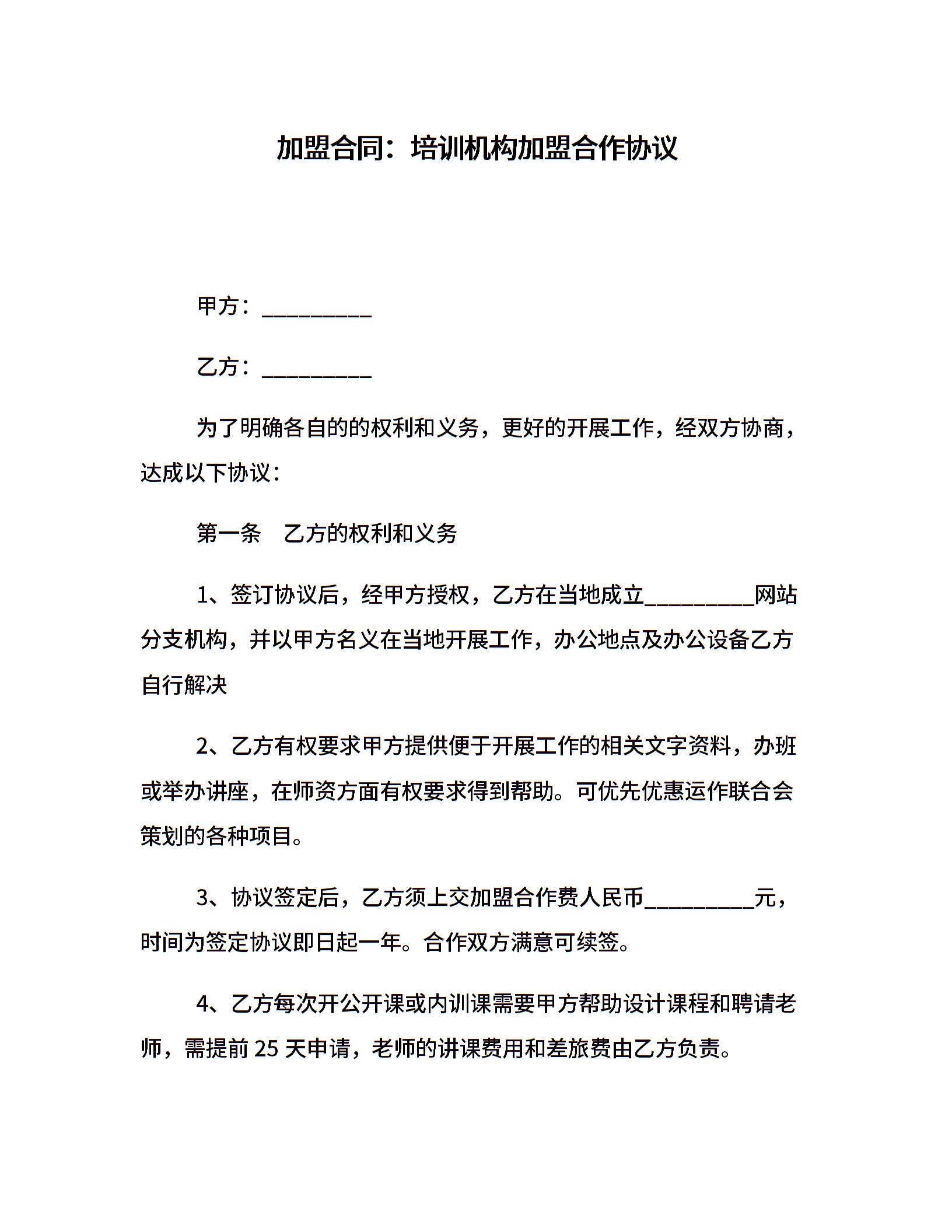 加盟合同:培训机构加盟合作协议
