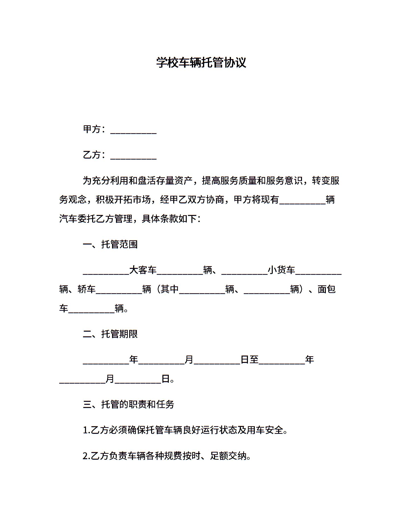 学校车辆托管协议