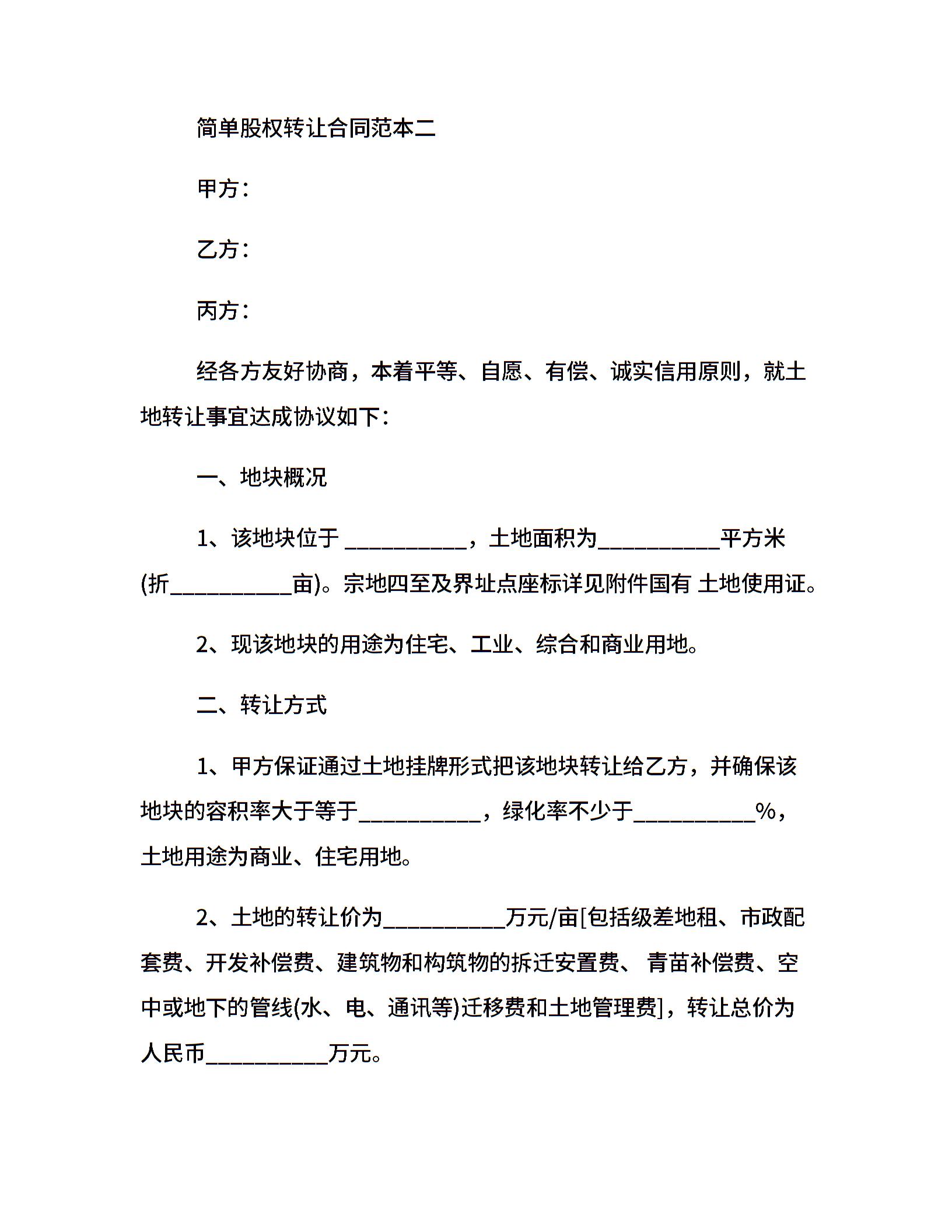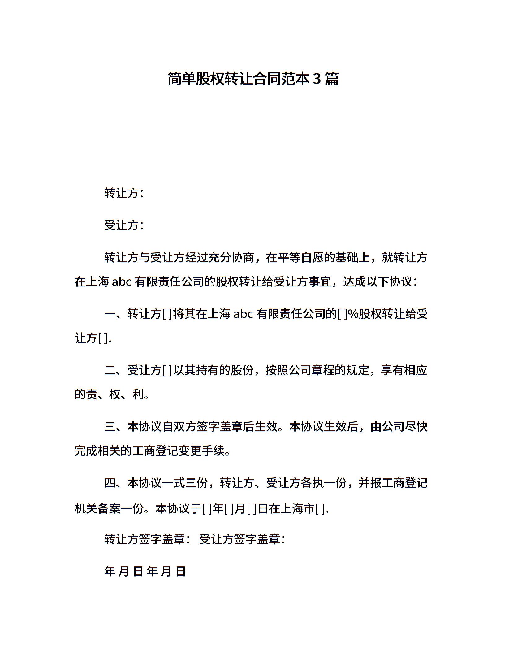 简单股权转让合同范本3篇