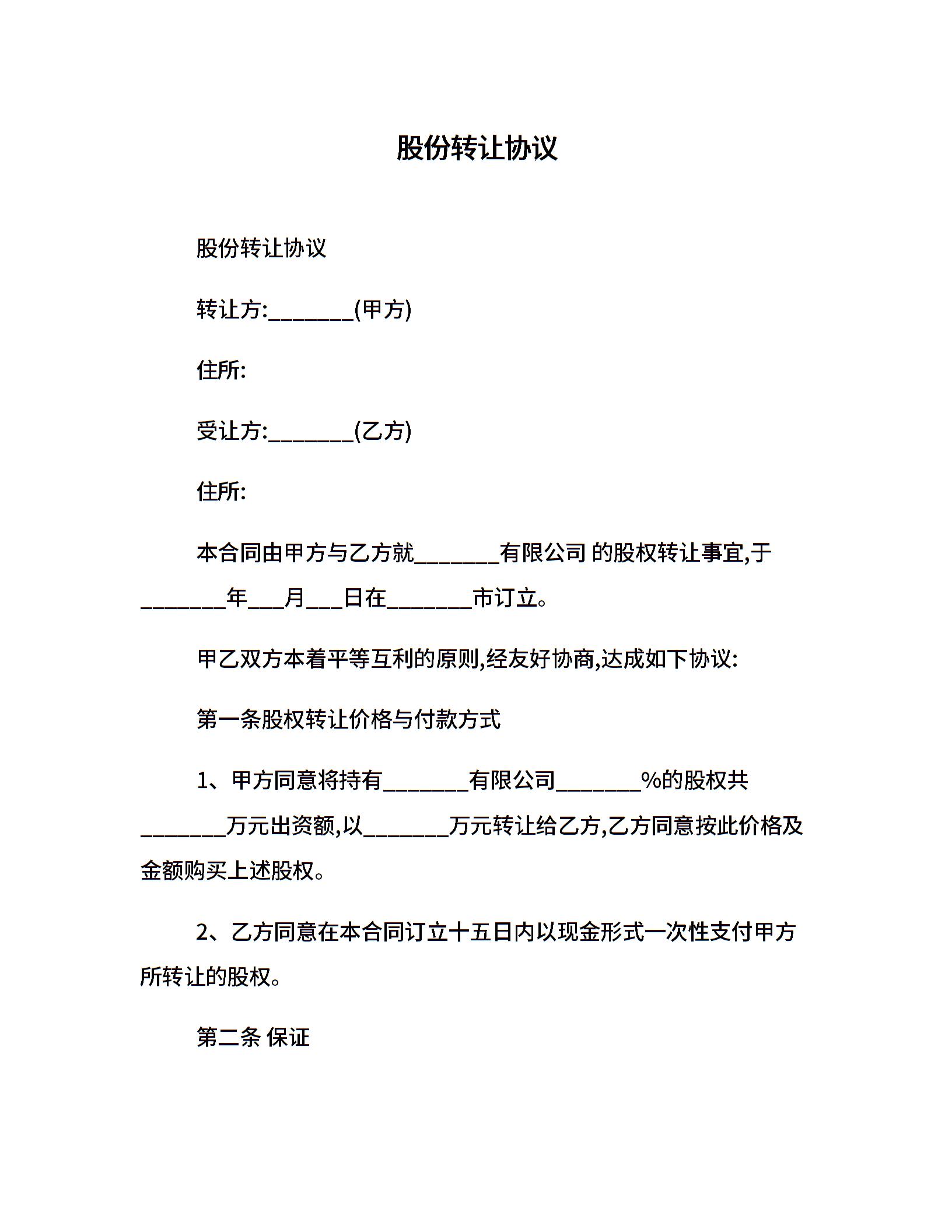 股份转让协议