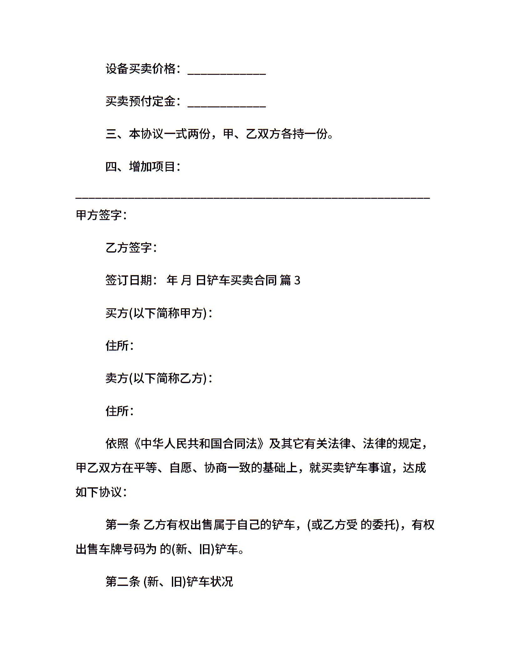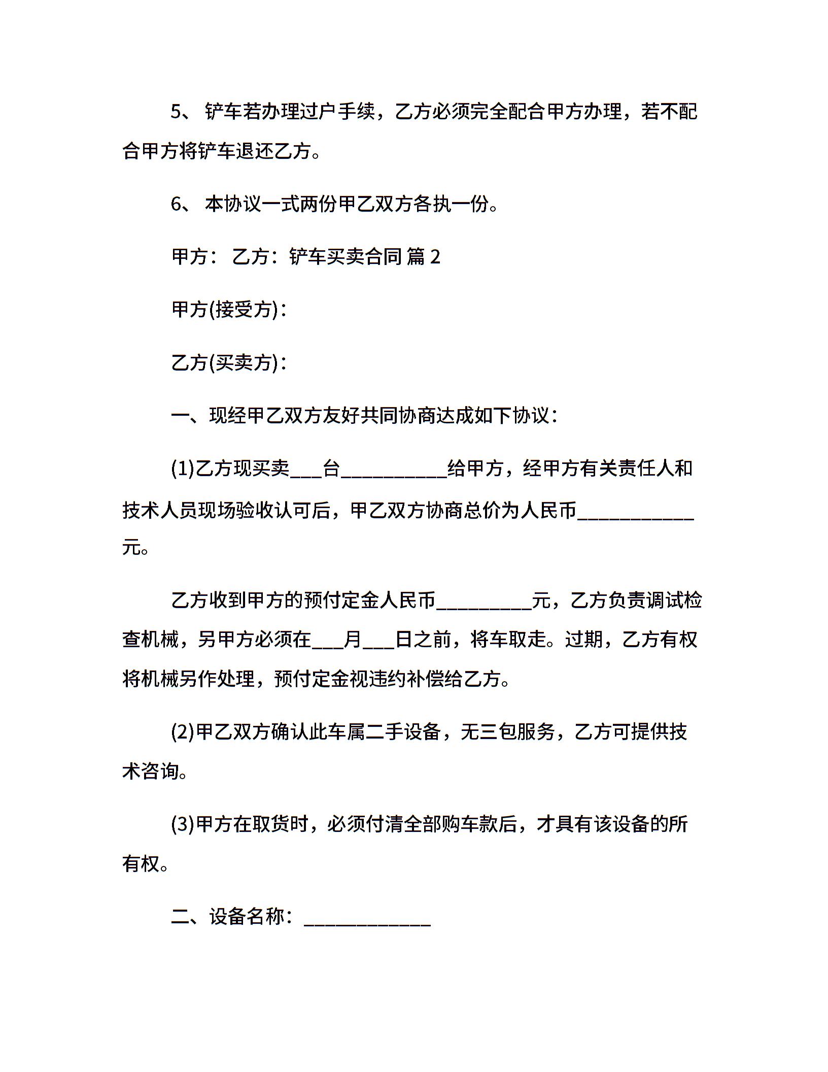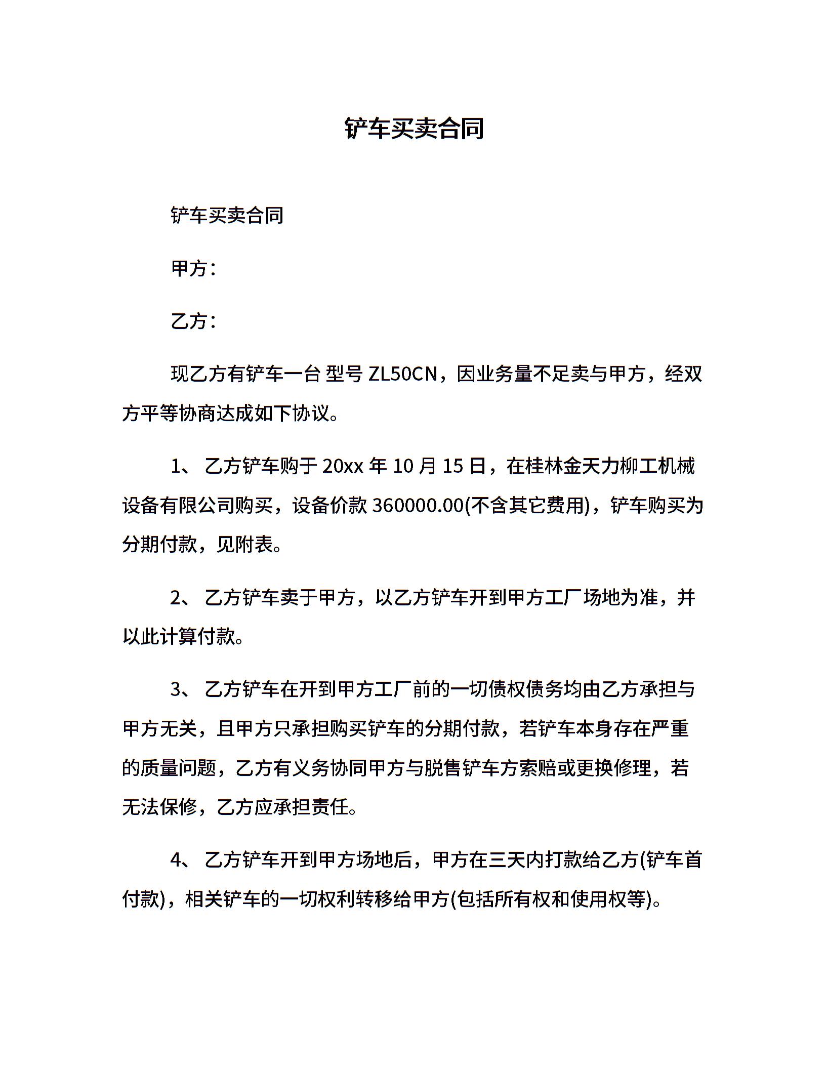 铲车买卖合同