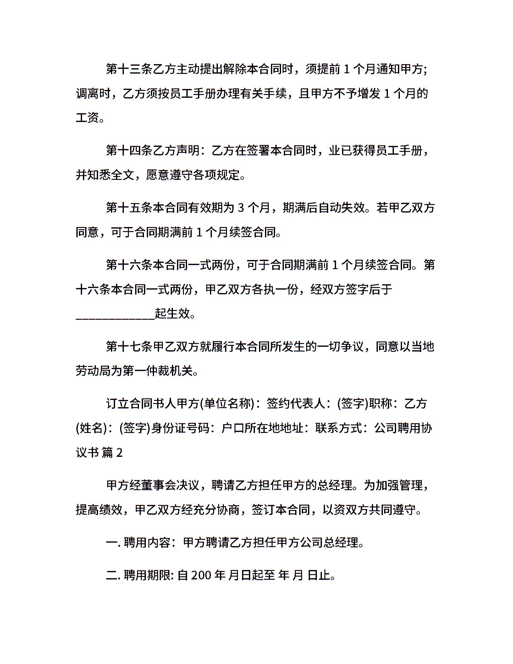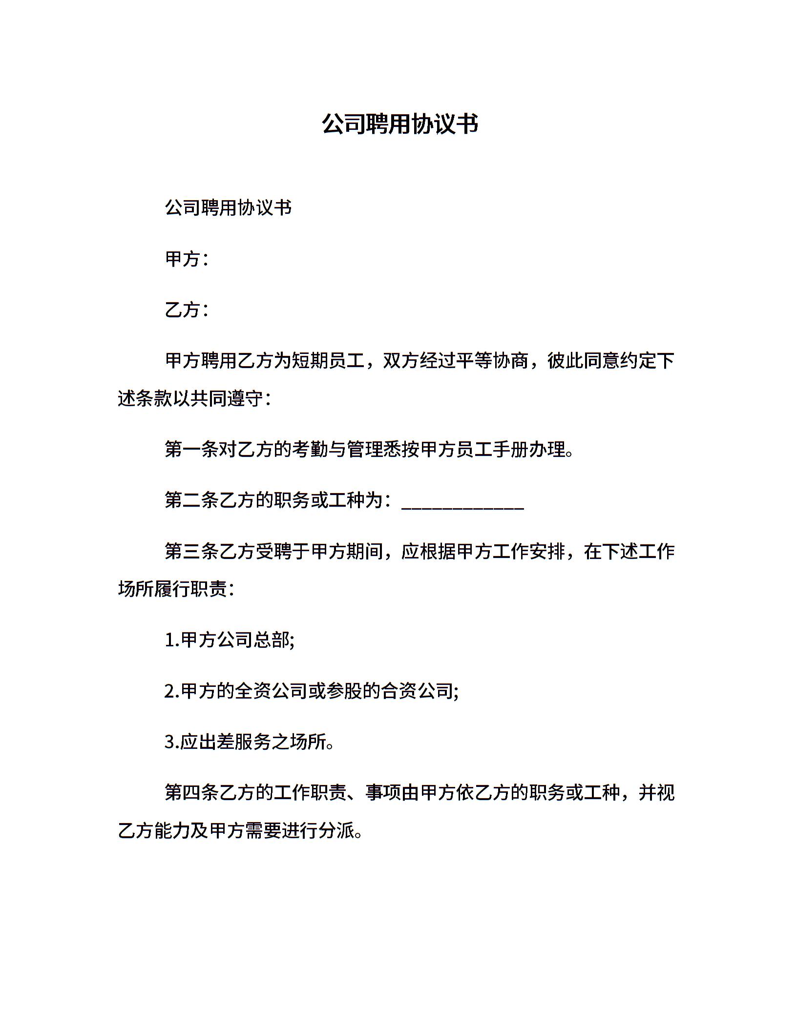 公司聘用协议书