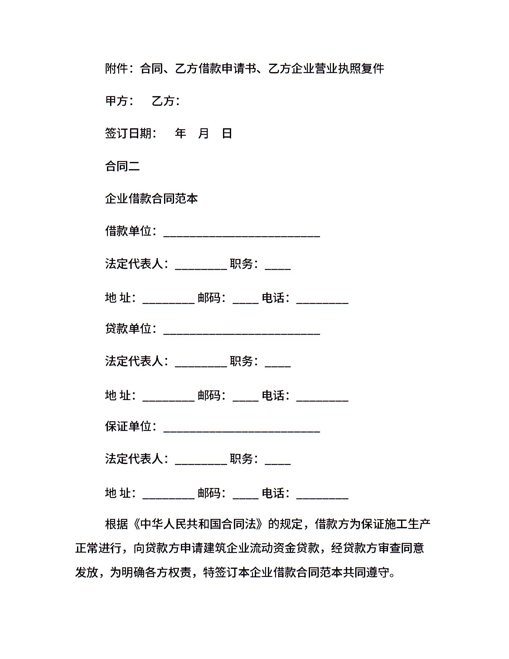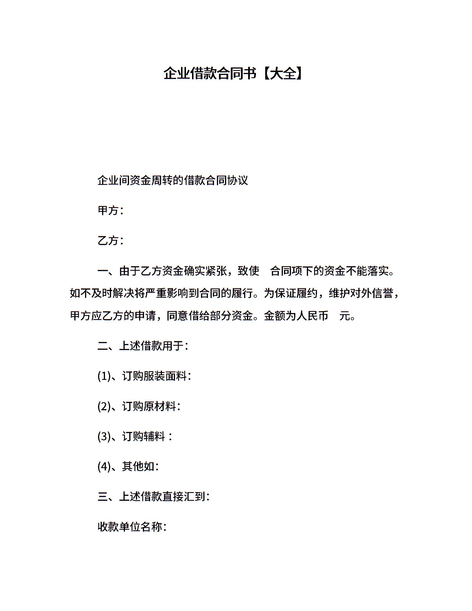企业借款合同书【大全】