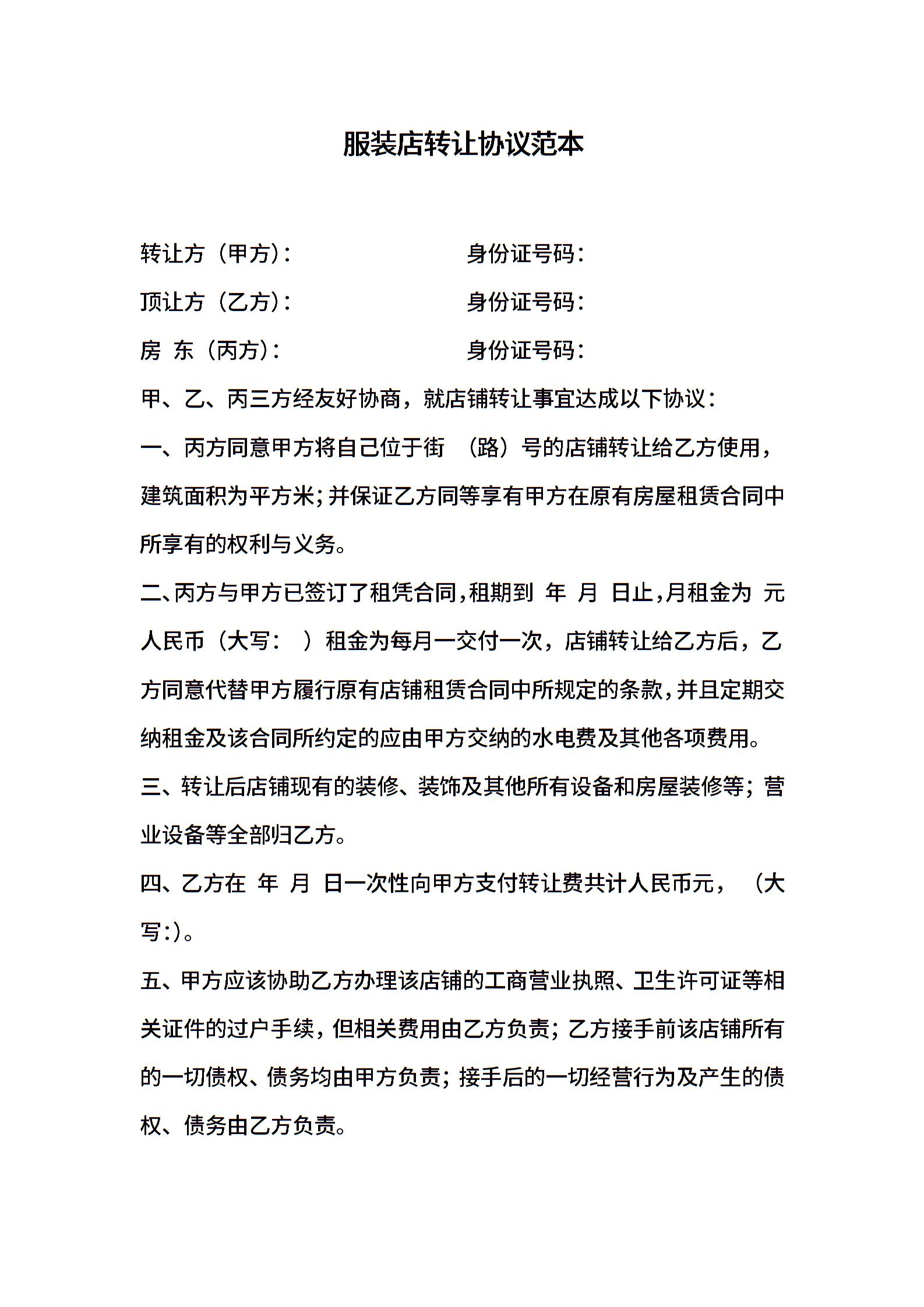 服装店转让协议范本