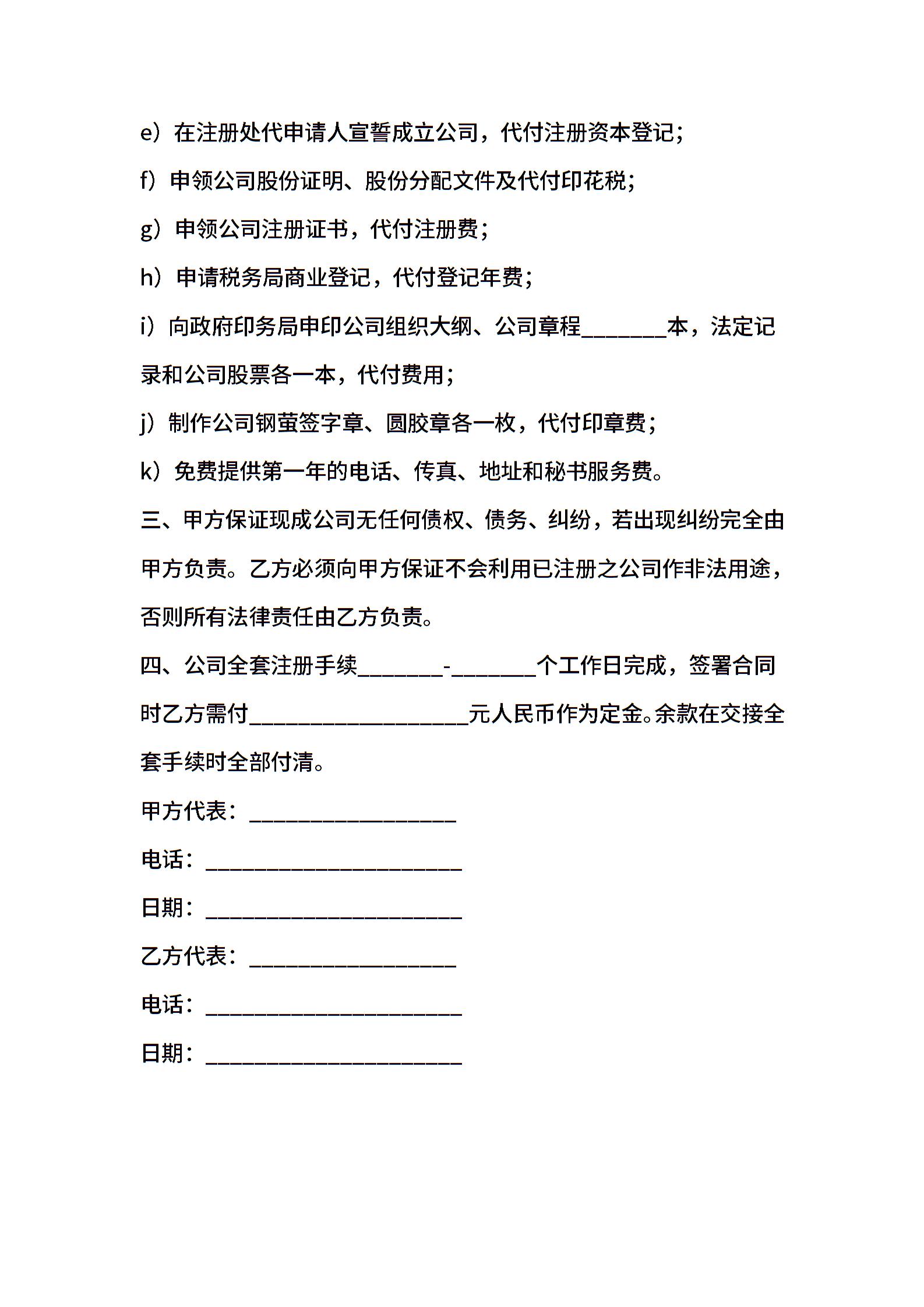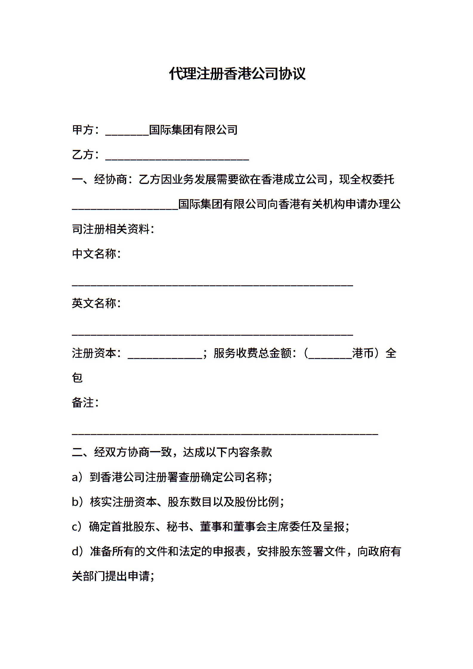 代理注册香港公司协议