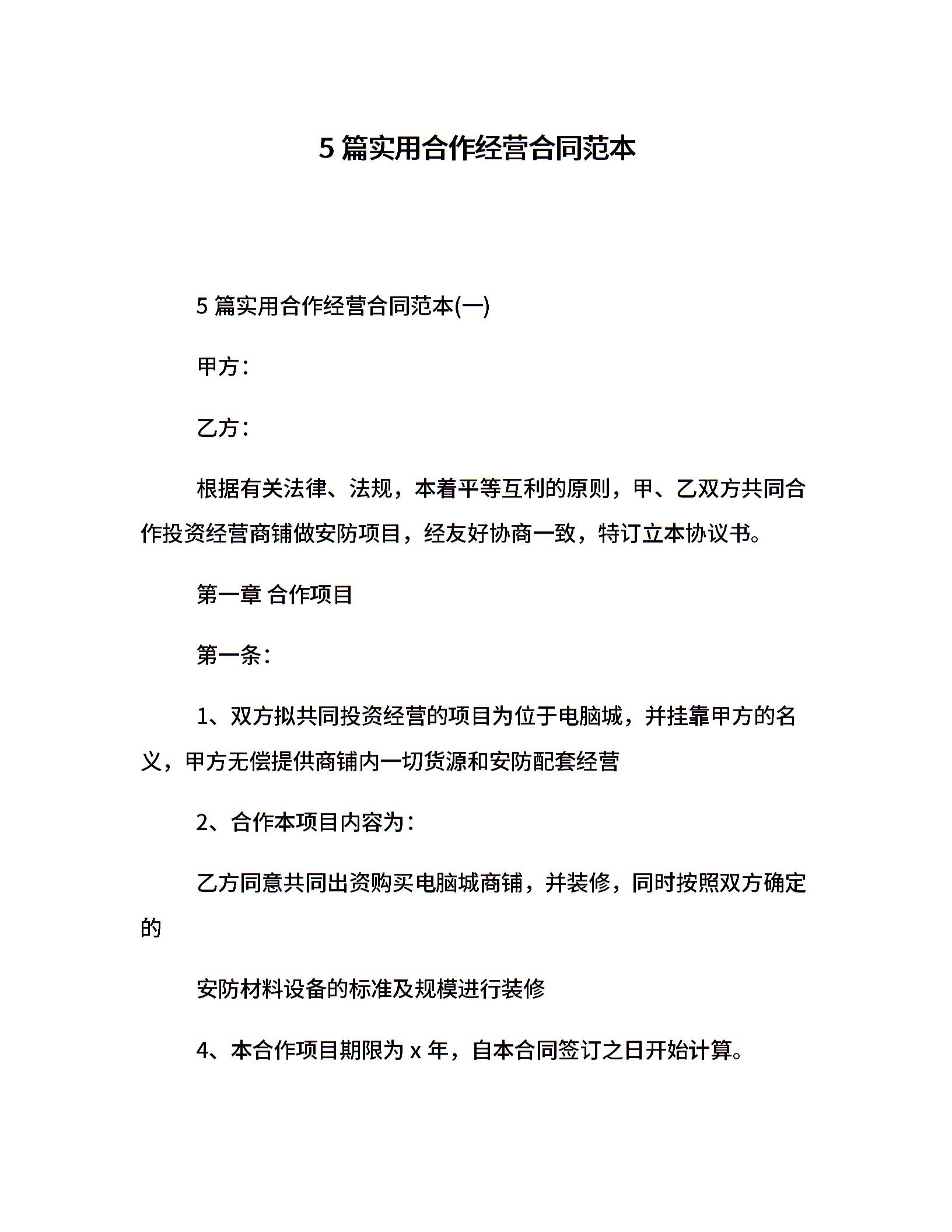5篇实用合作经营合同范本