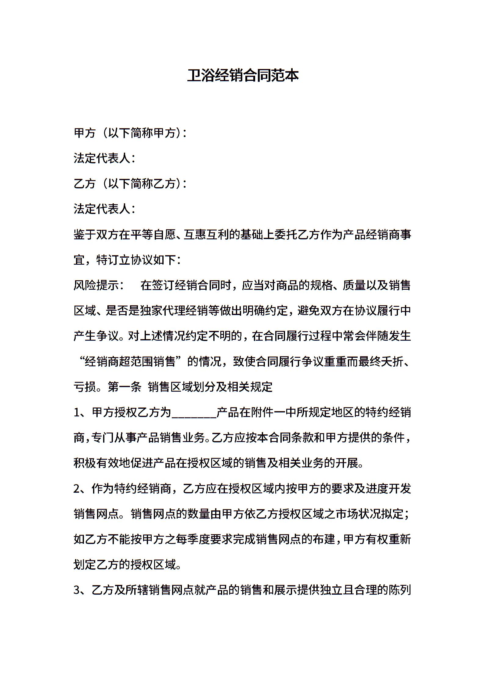 卫浴经销合同范本