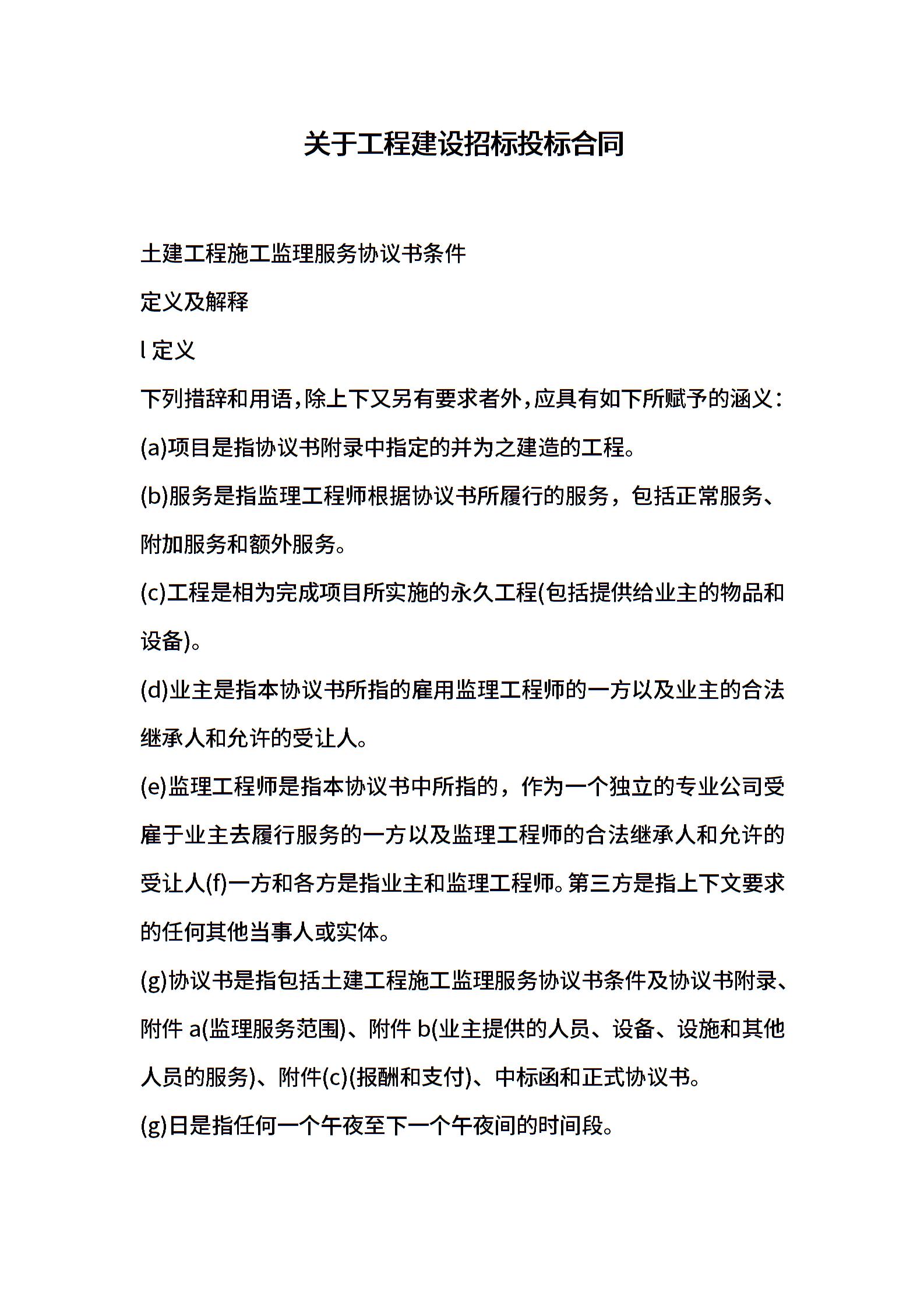 关于工程建设招标投标合同