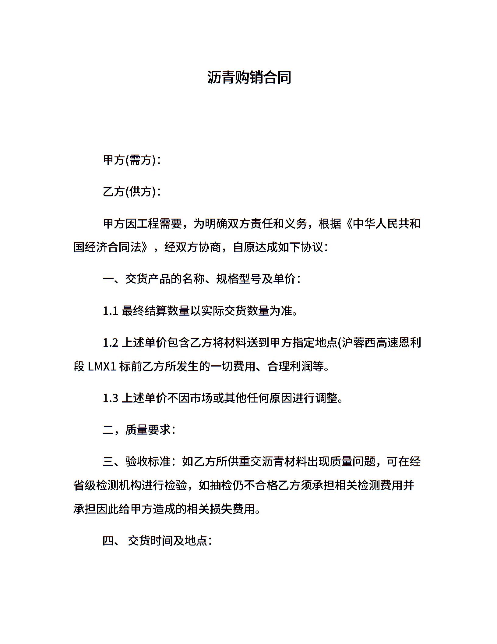 沥青购销合同