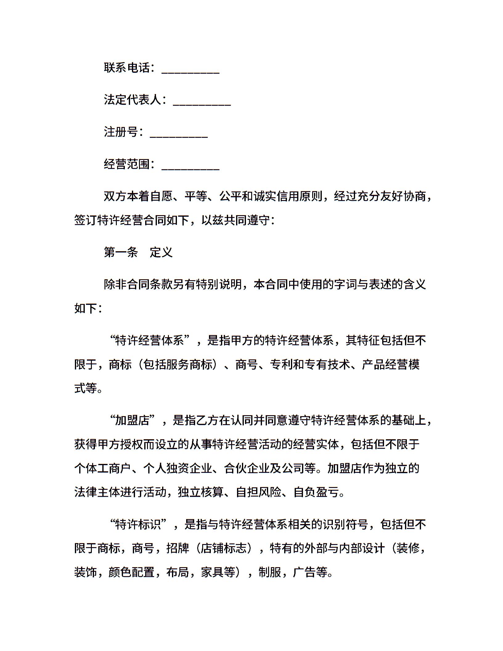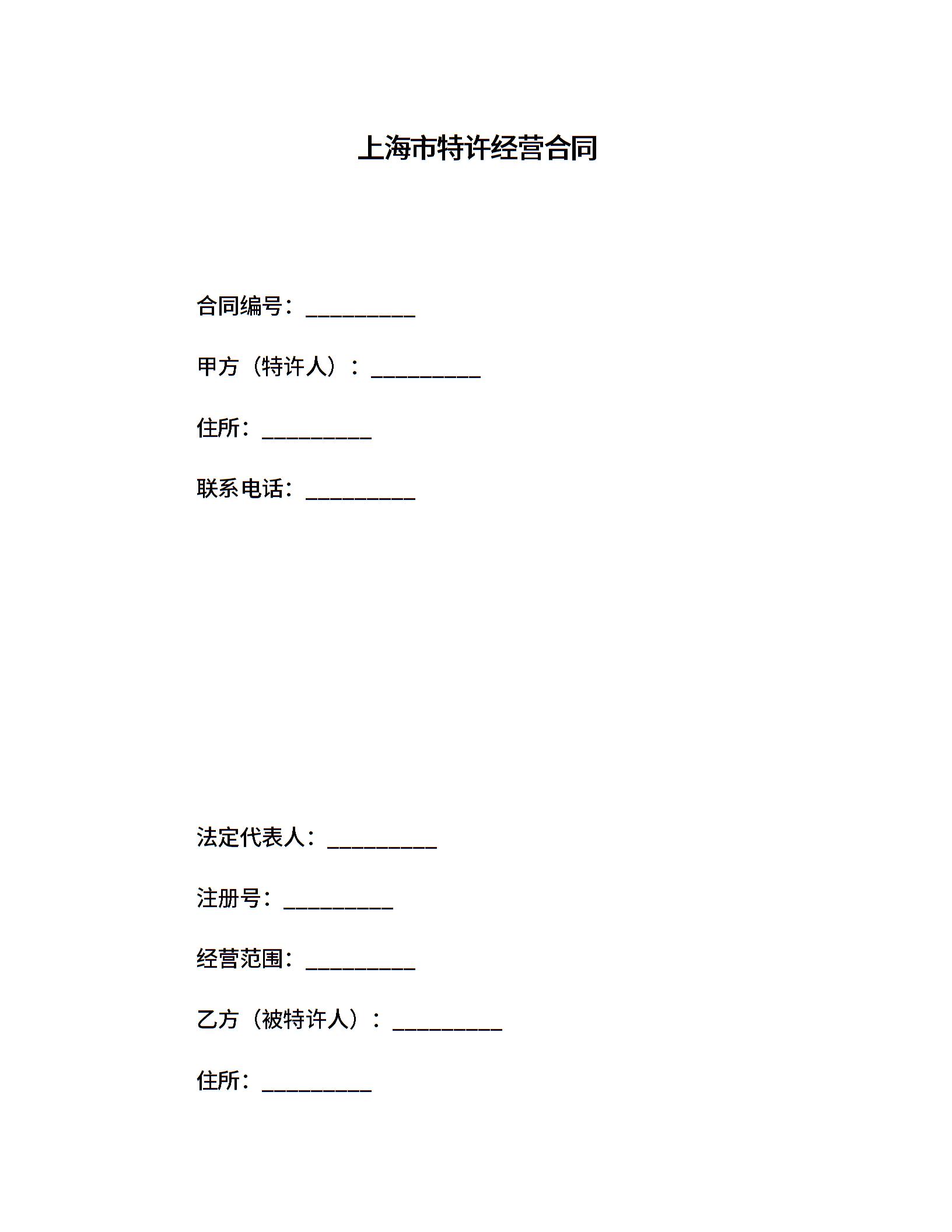 上海市特许经营合同