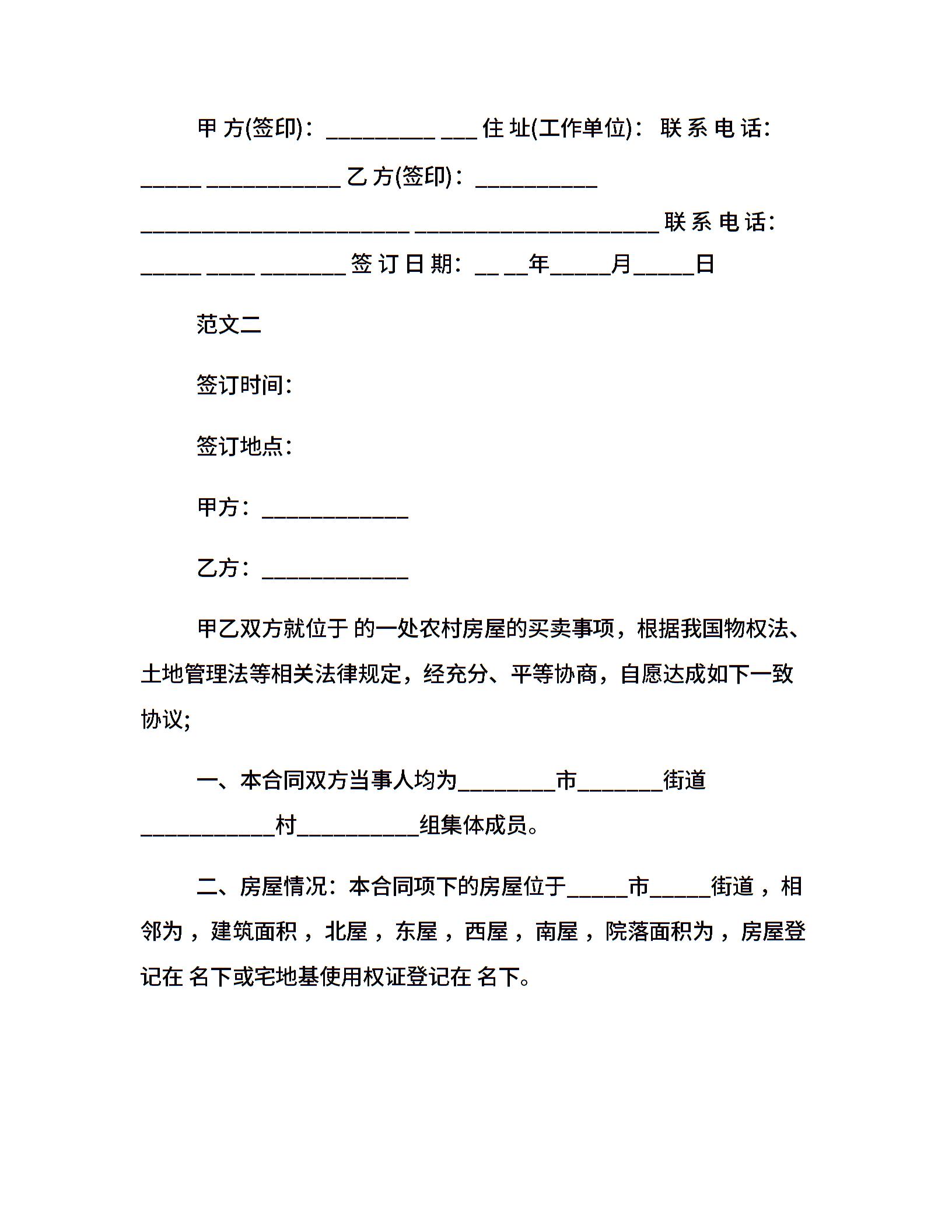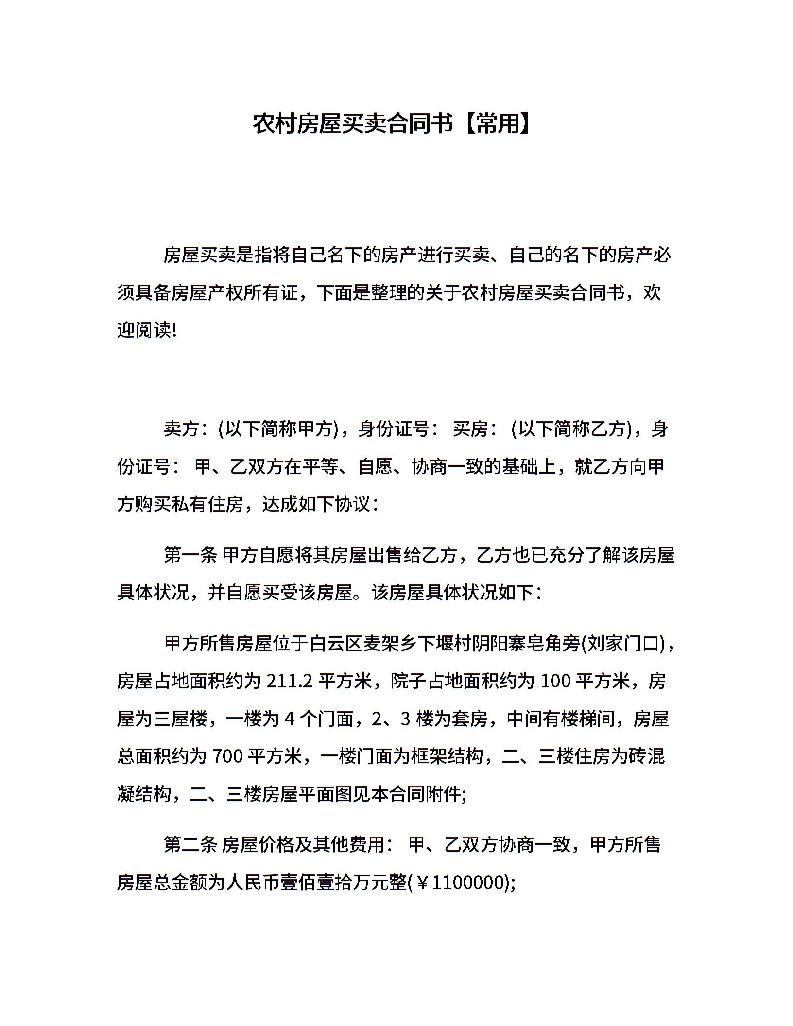 农村房屋买卖合同书【常用】
