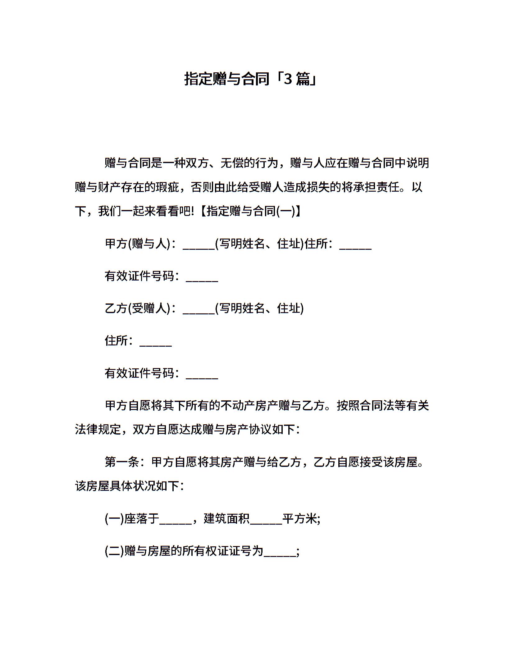 指定赠与合同「3篇」