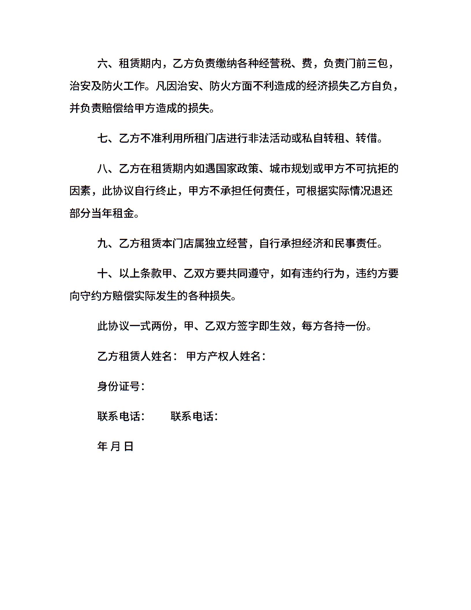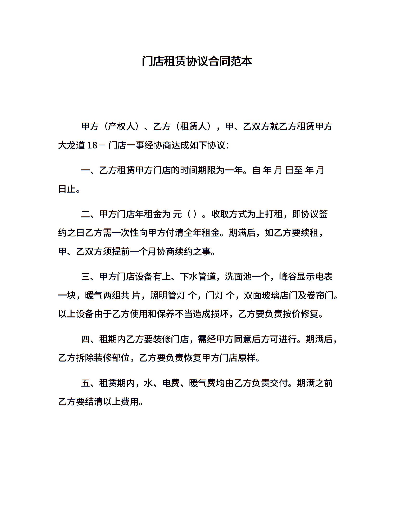 门店租赁协议合同范本