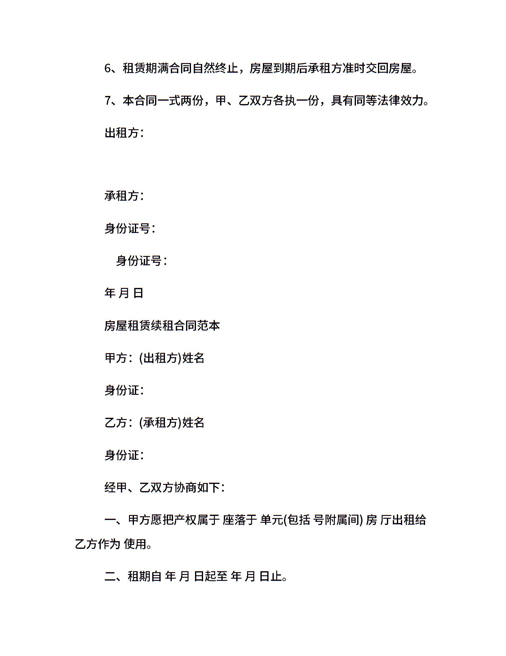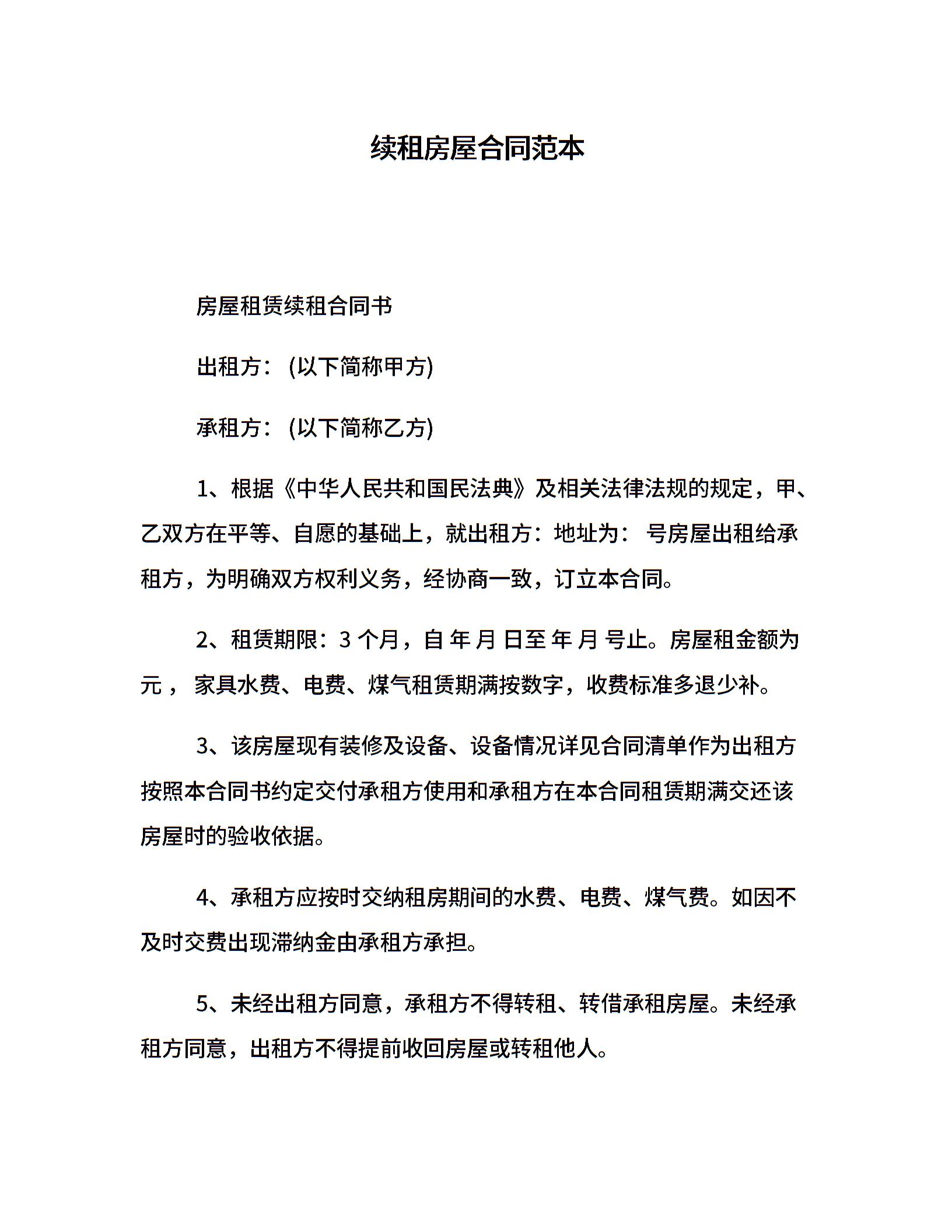 续租房屋合同范本