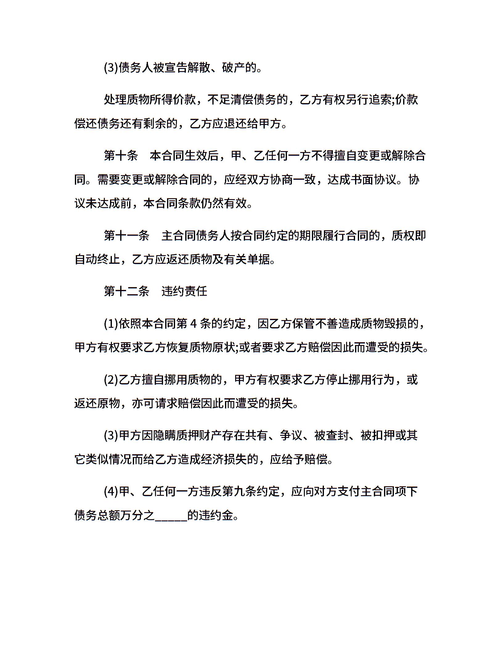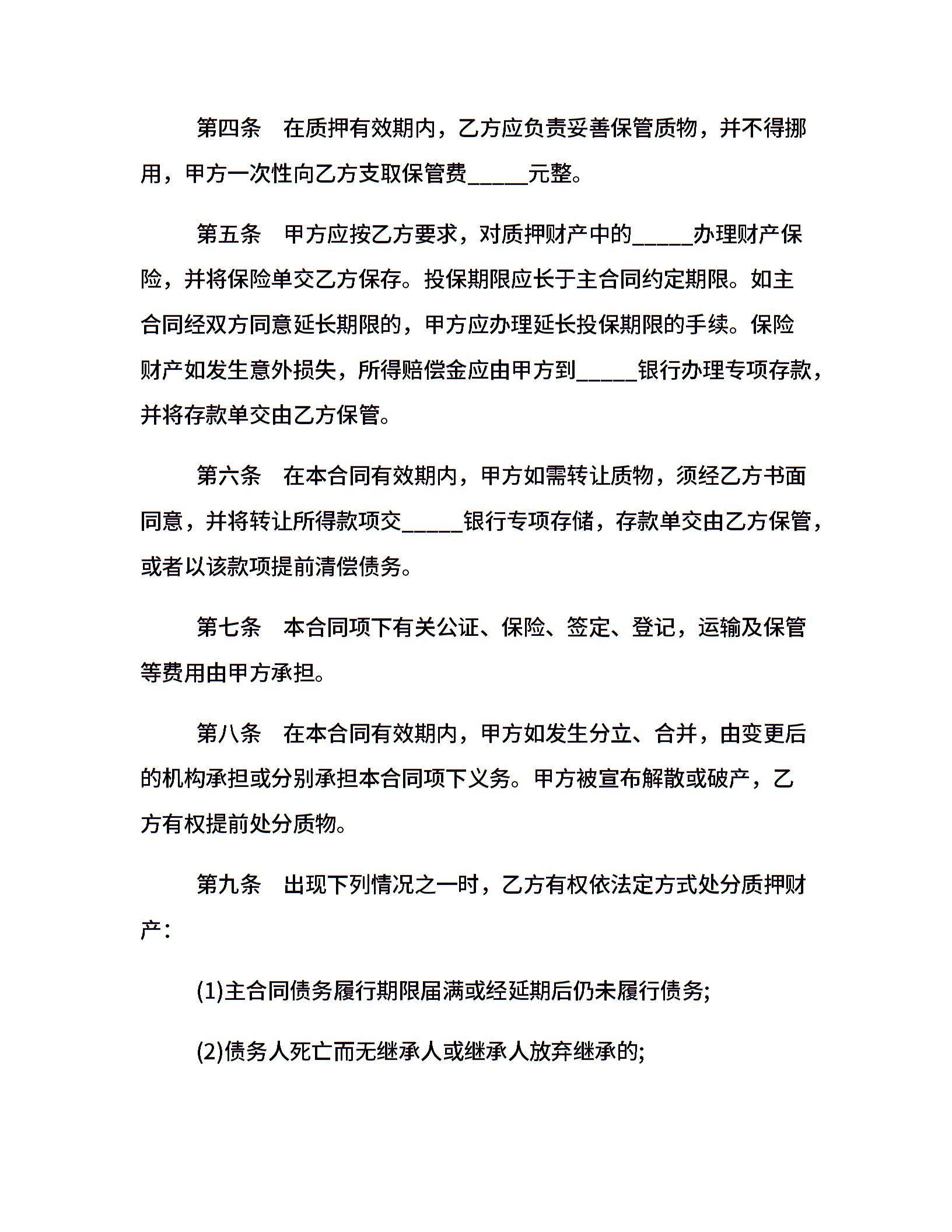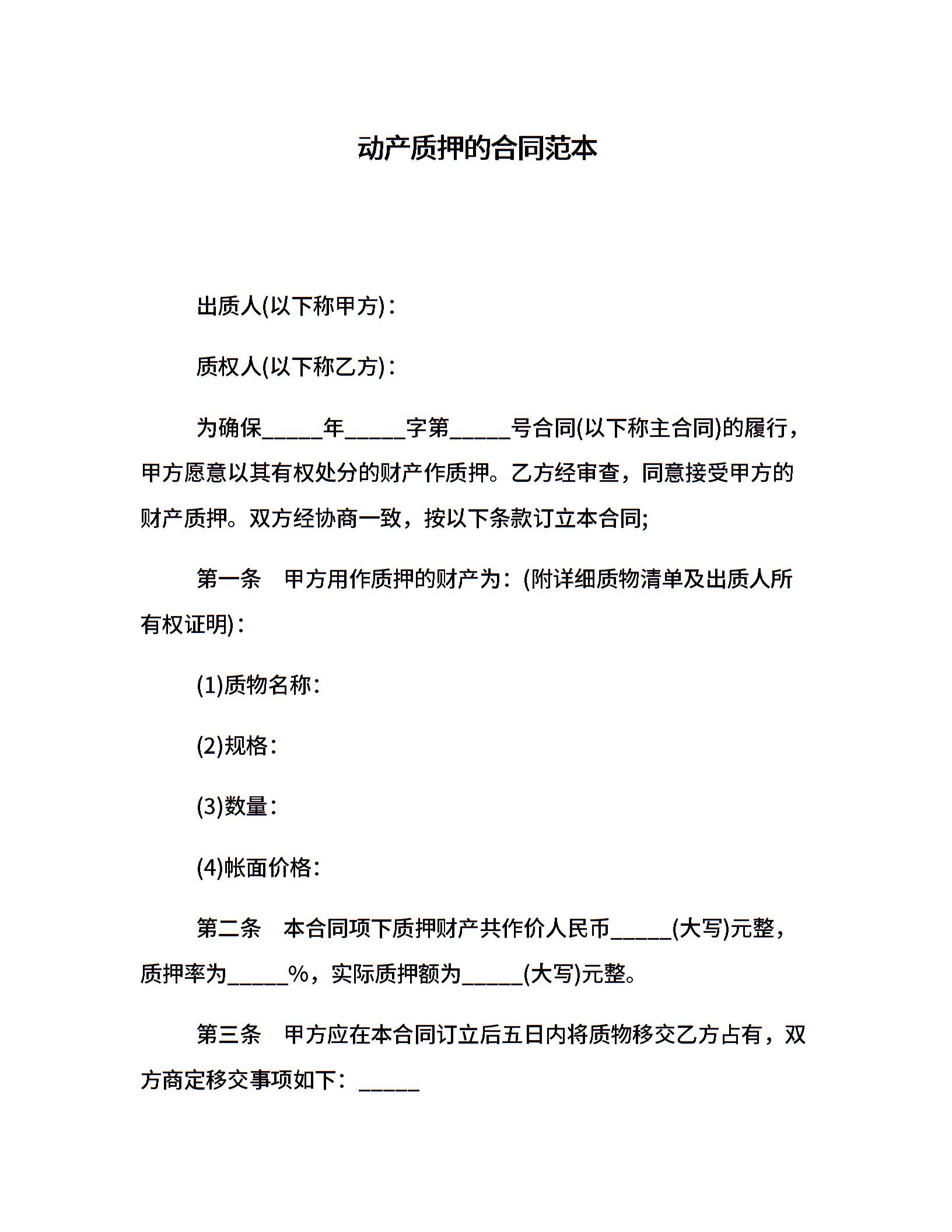 动产质押的合同范本