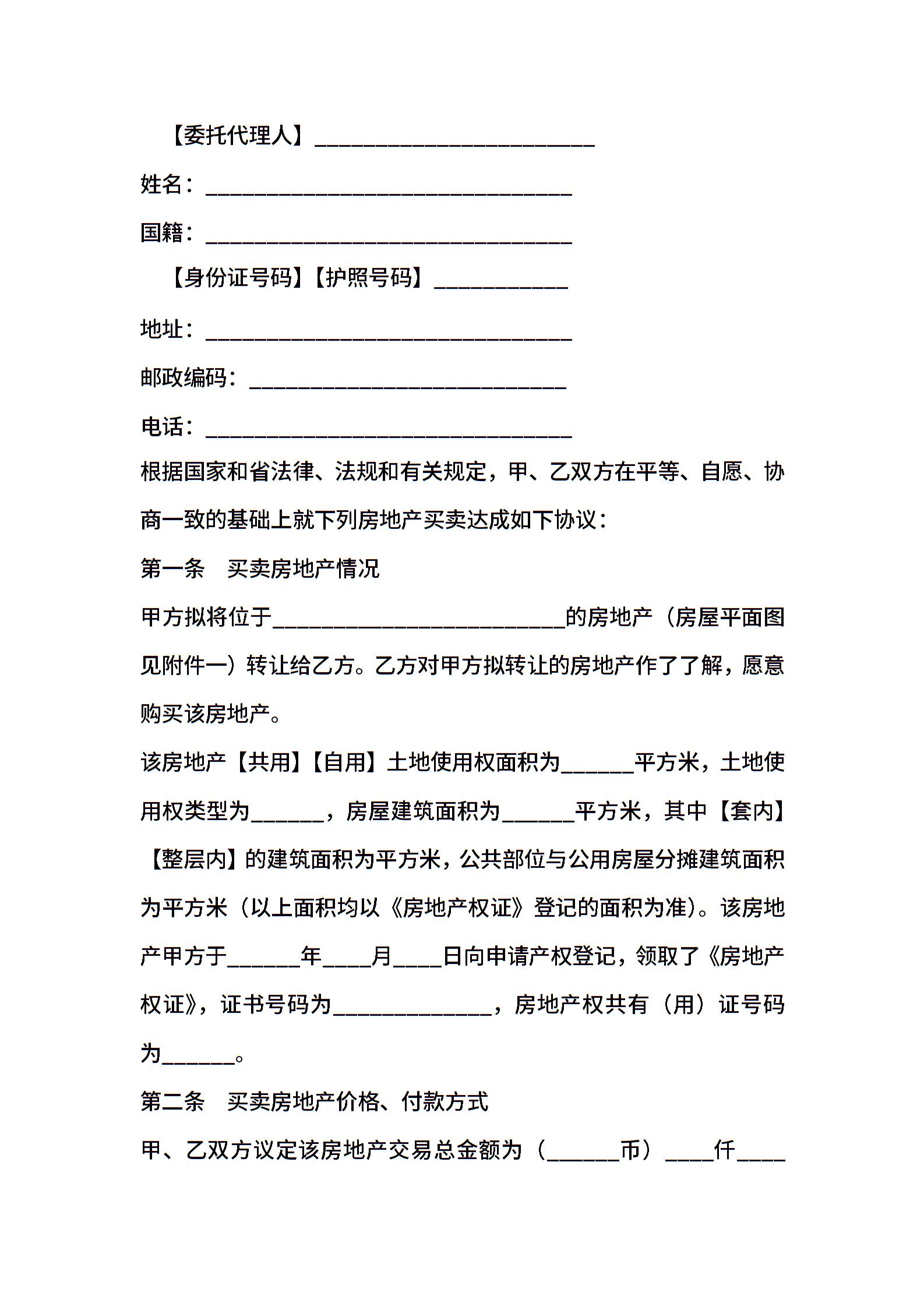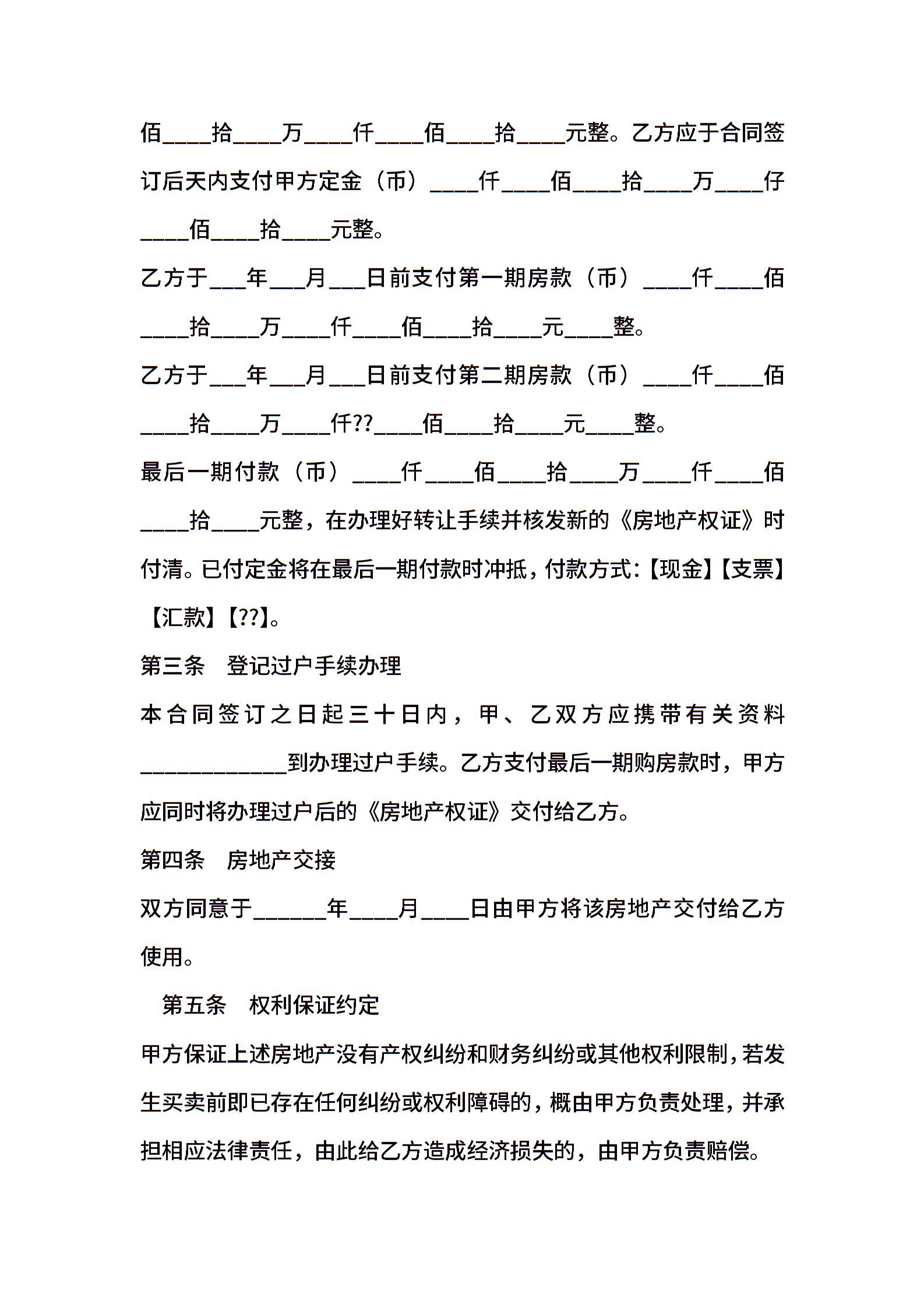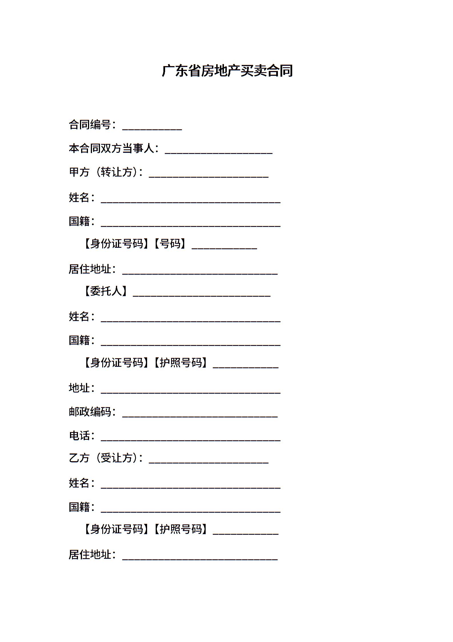 广东省房地产买卖合同