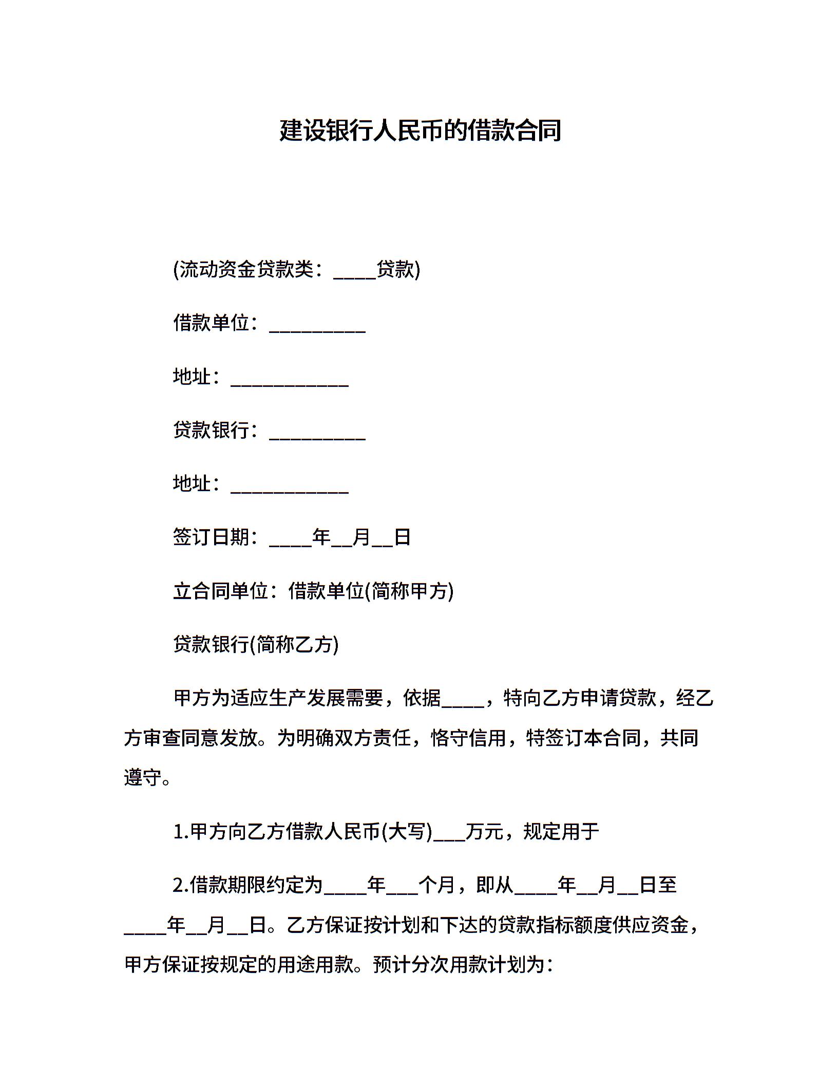 建设银行人民币的借款合同