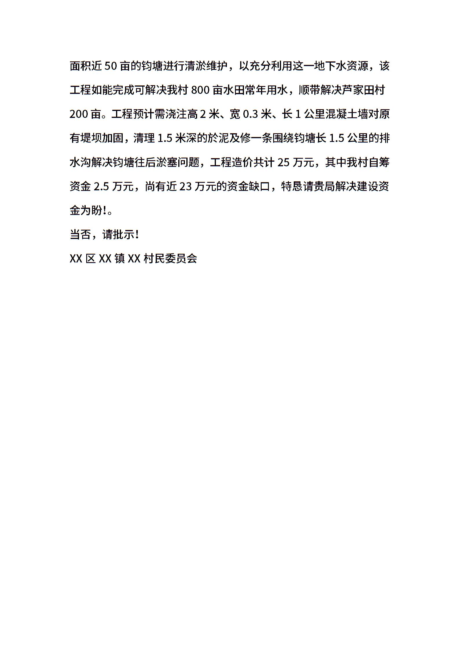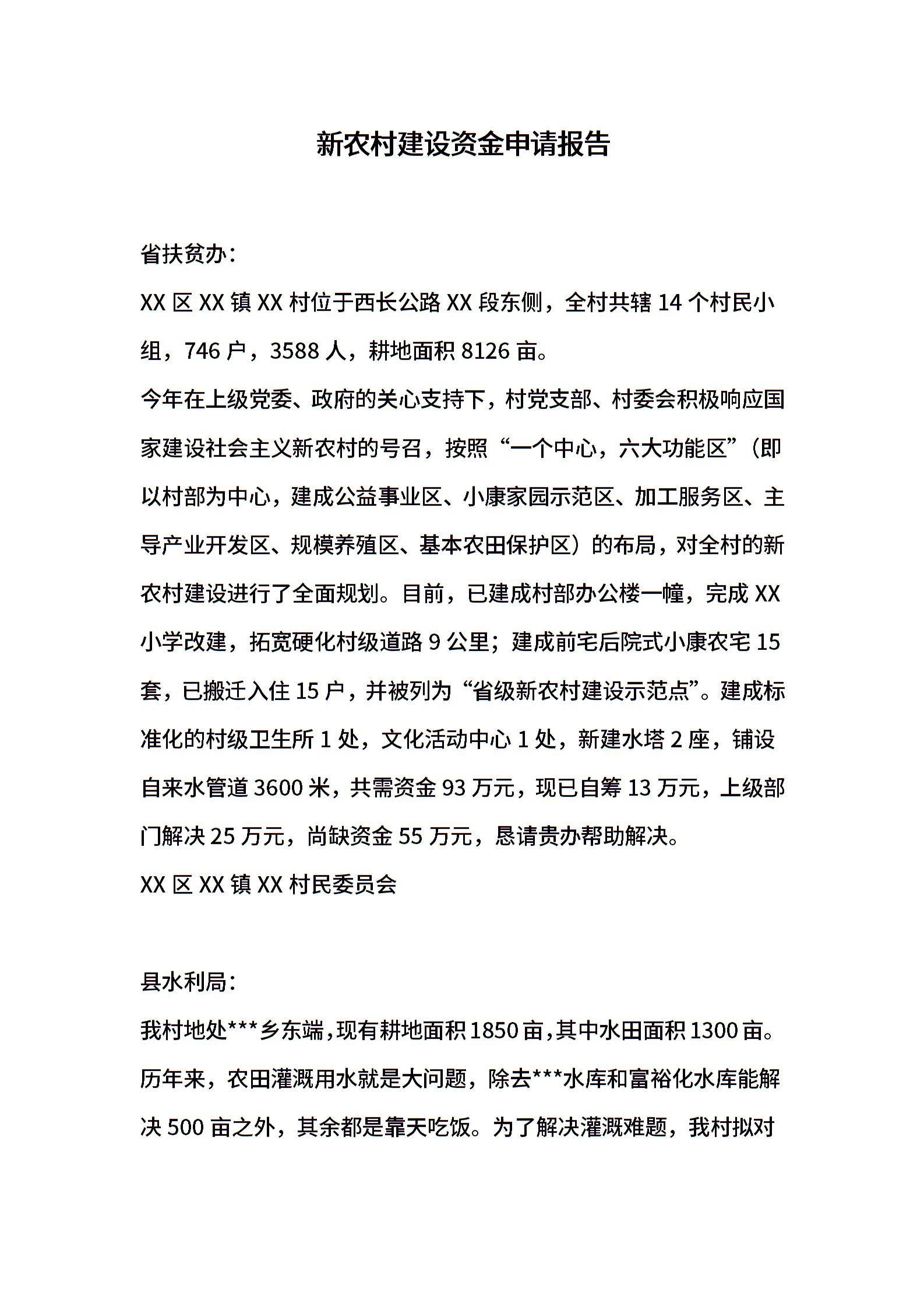 新农村建设资金申请报告范文