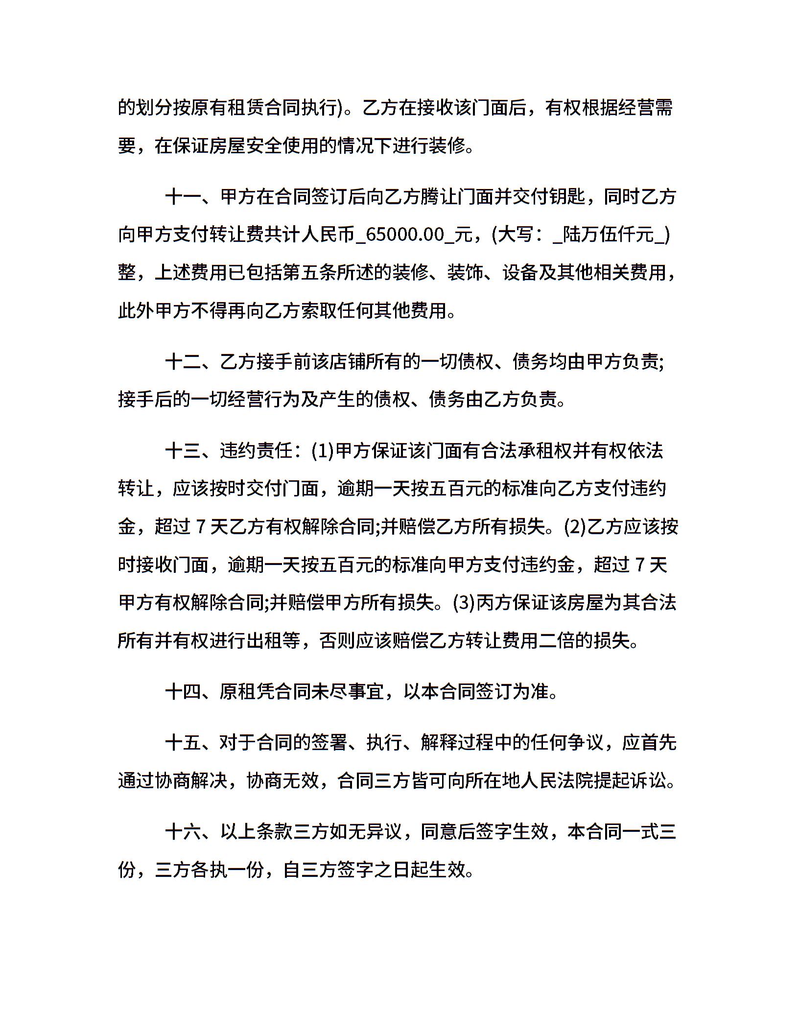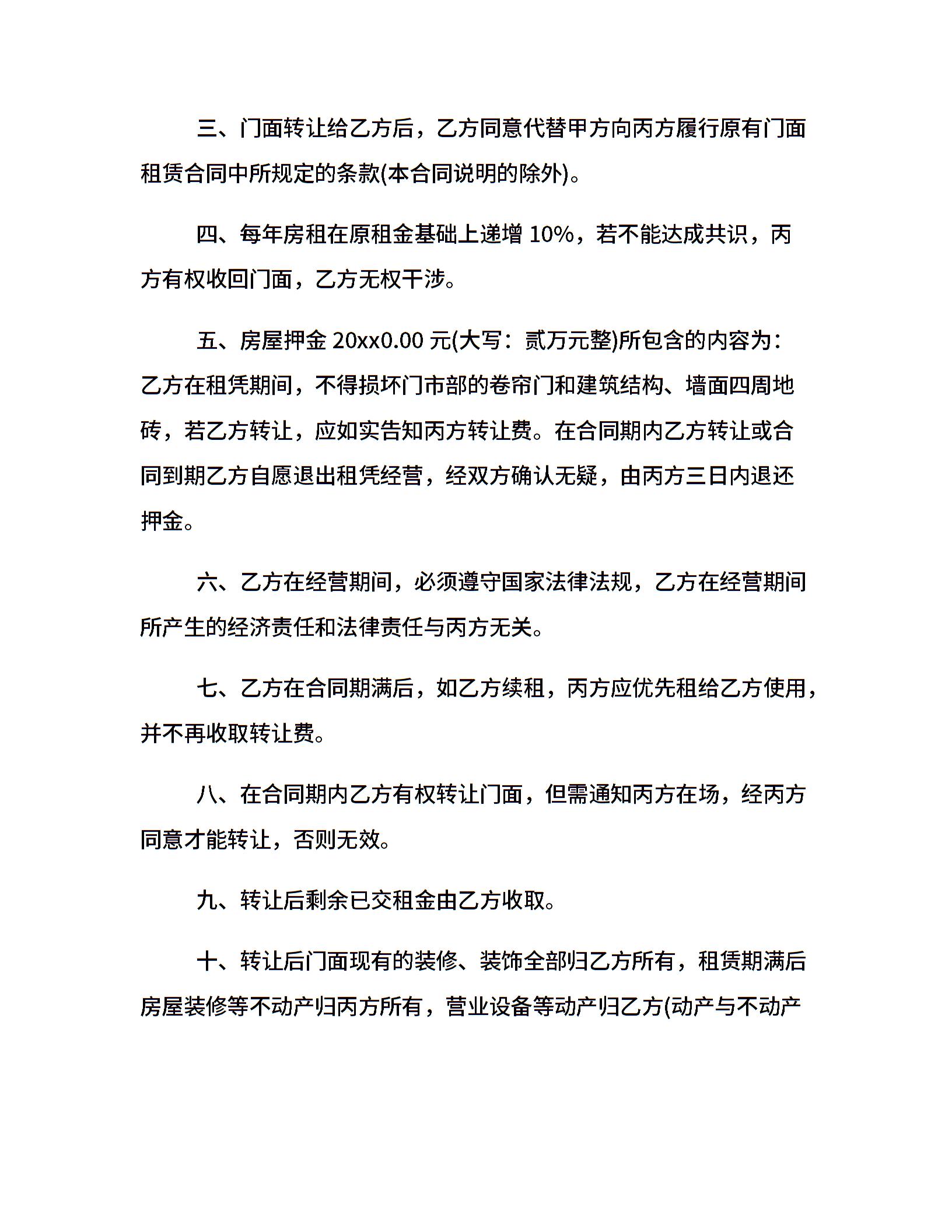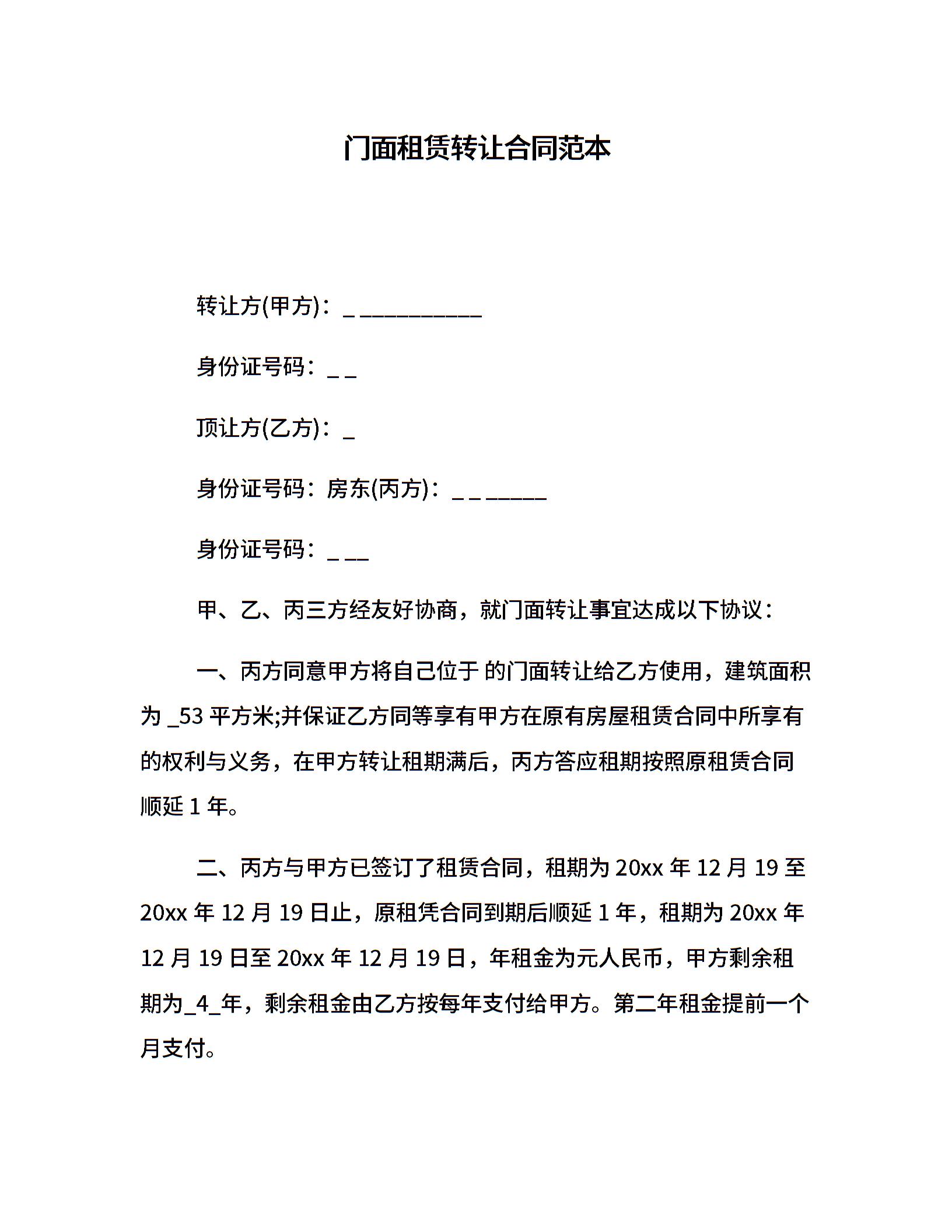 门面租赁转让合同范本