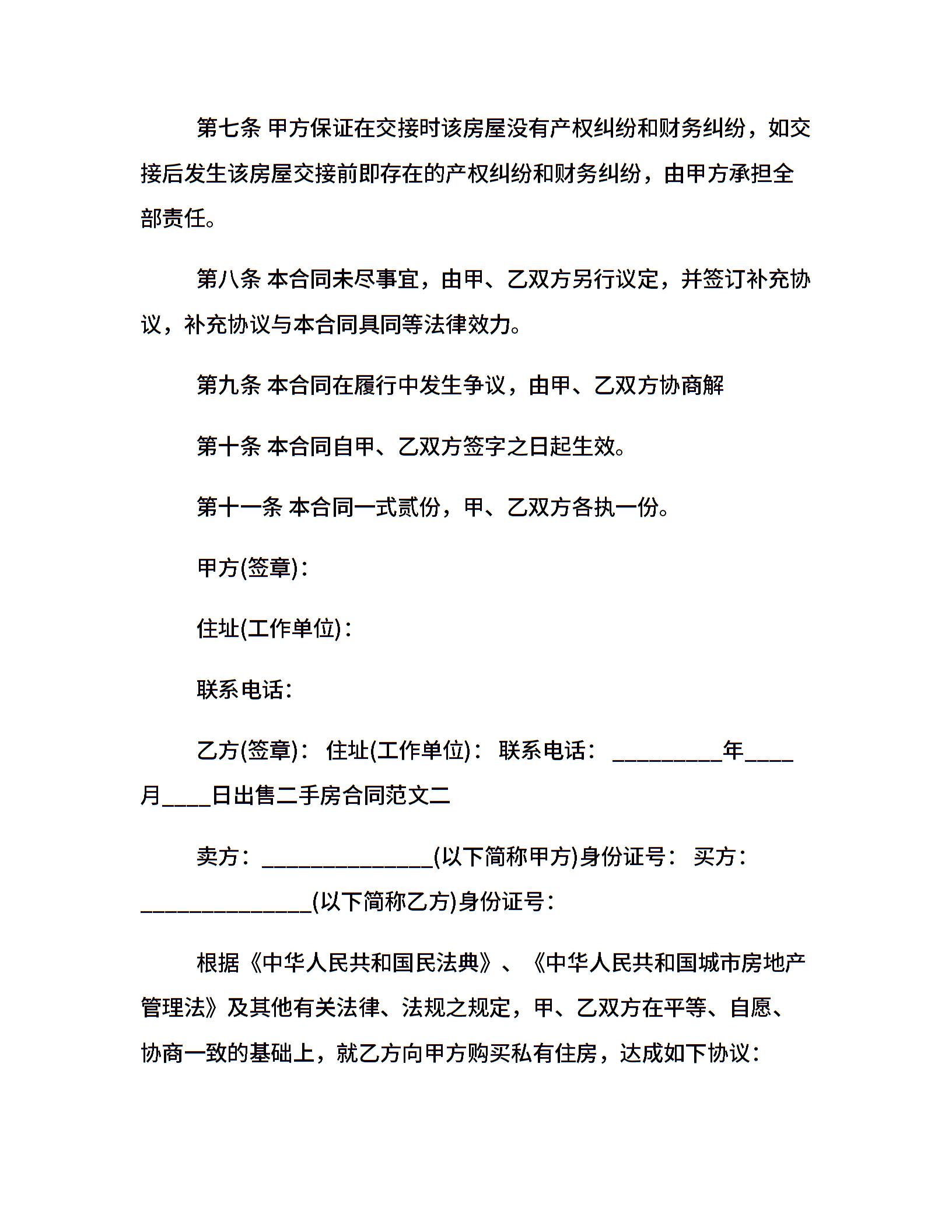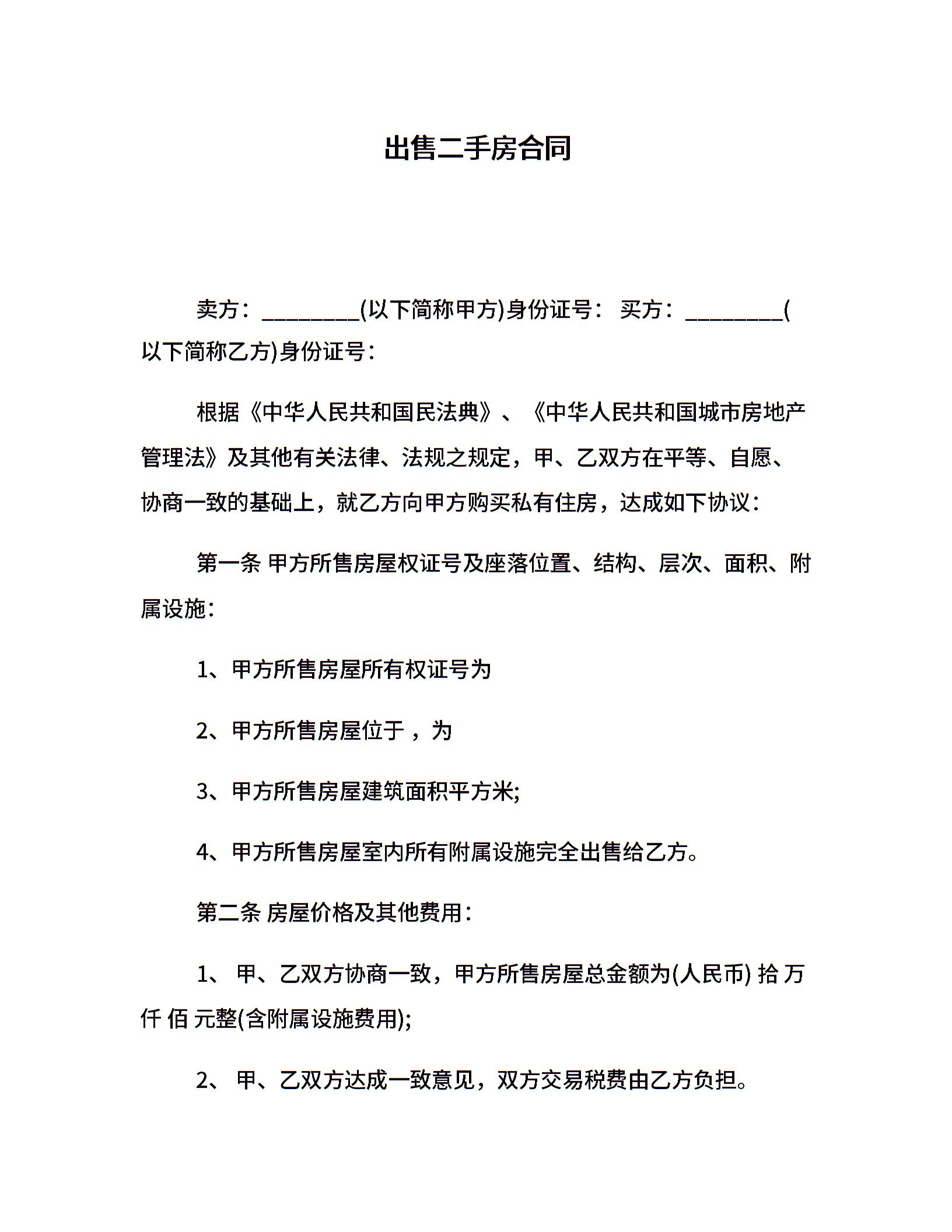 出售二手房合同