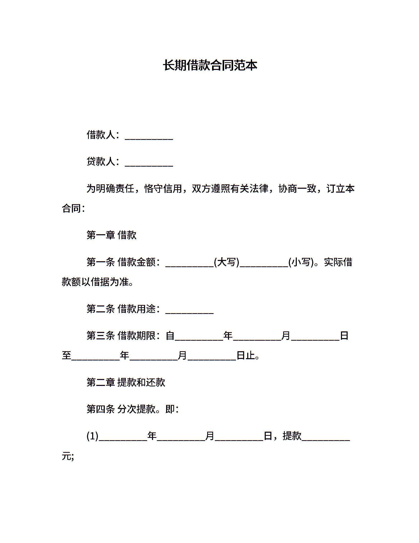 长期借款合同范本