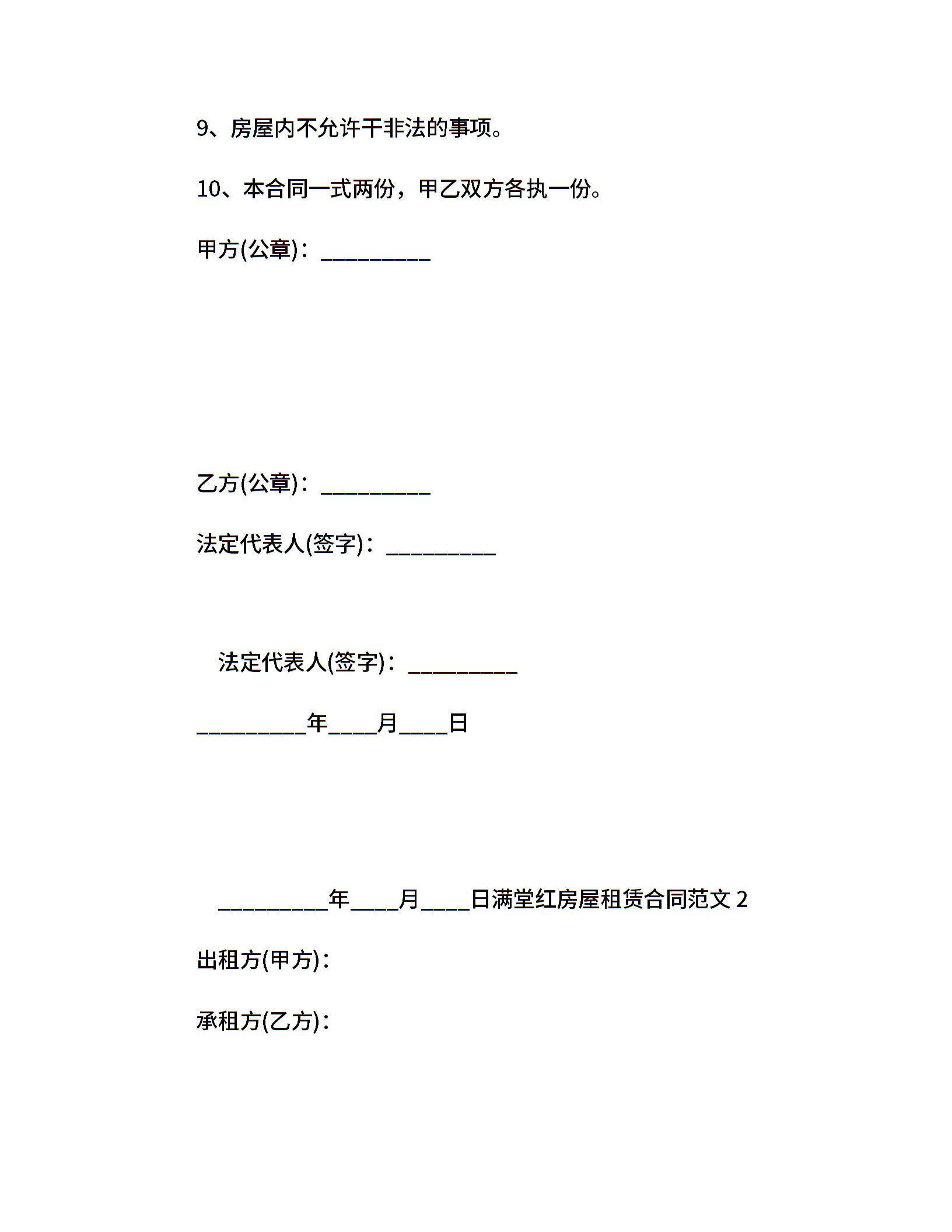满堂红房屋租赁合同