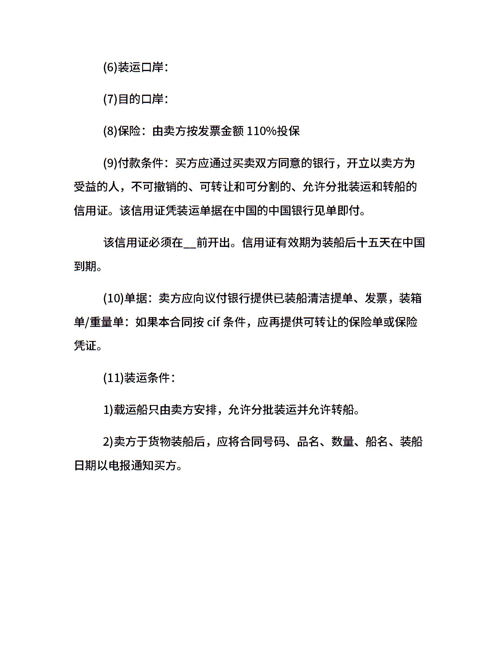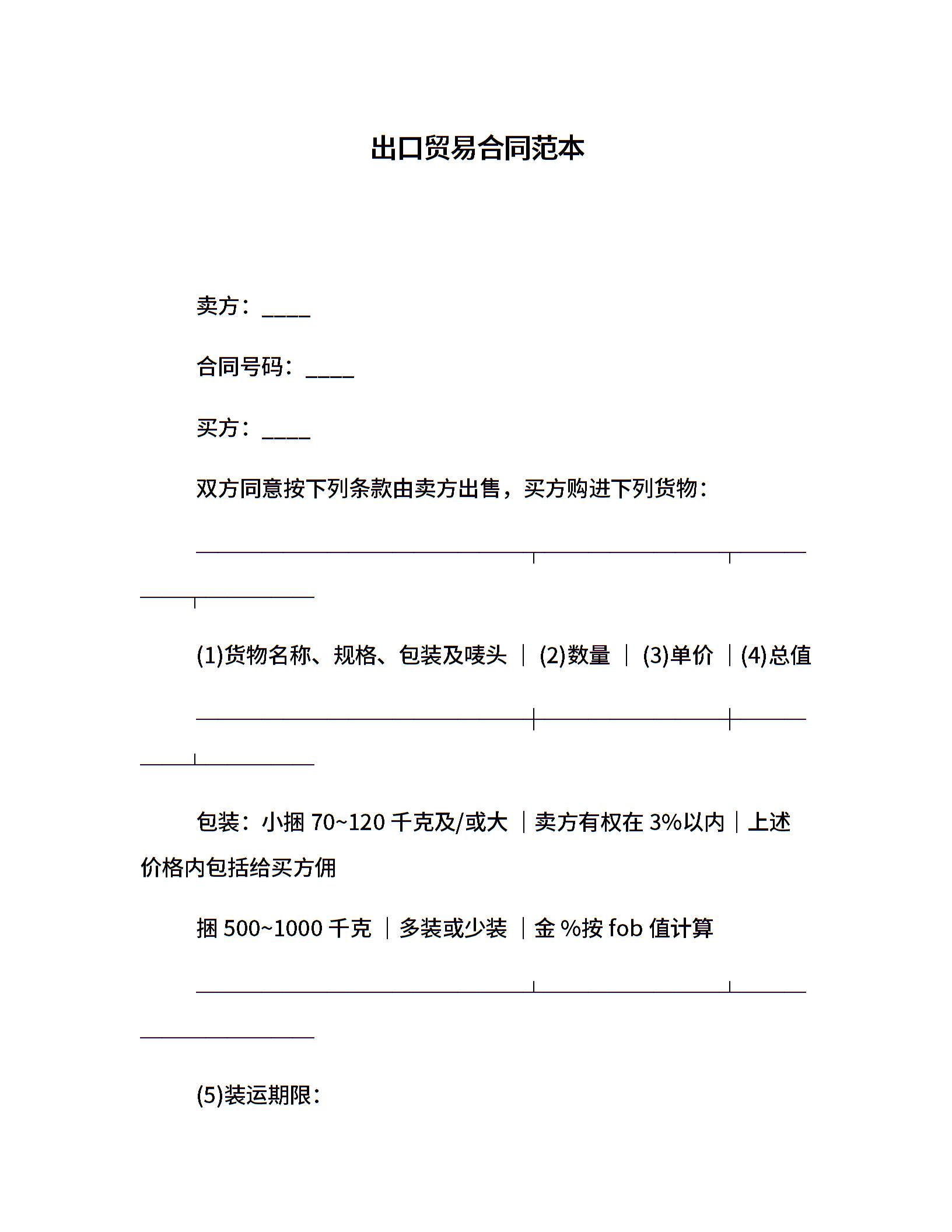 出口贸易合同范本
