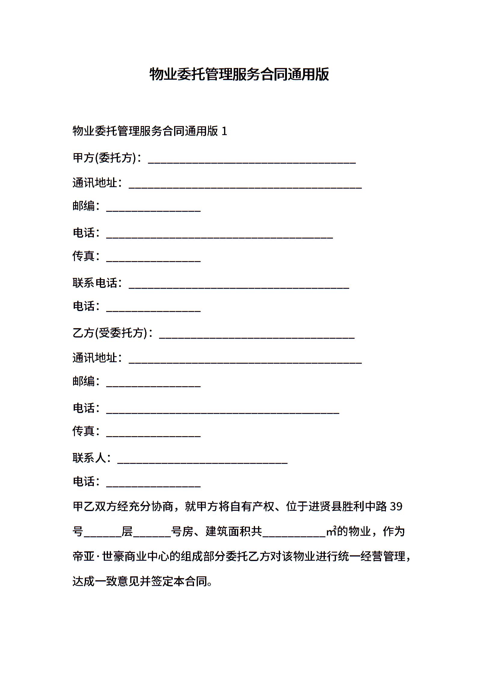 物业委托管理服务合同通用版