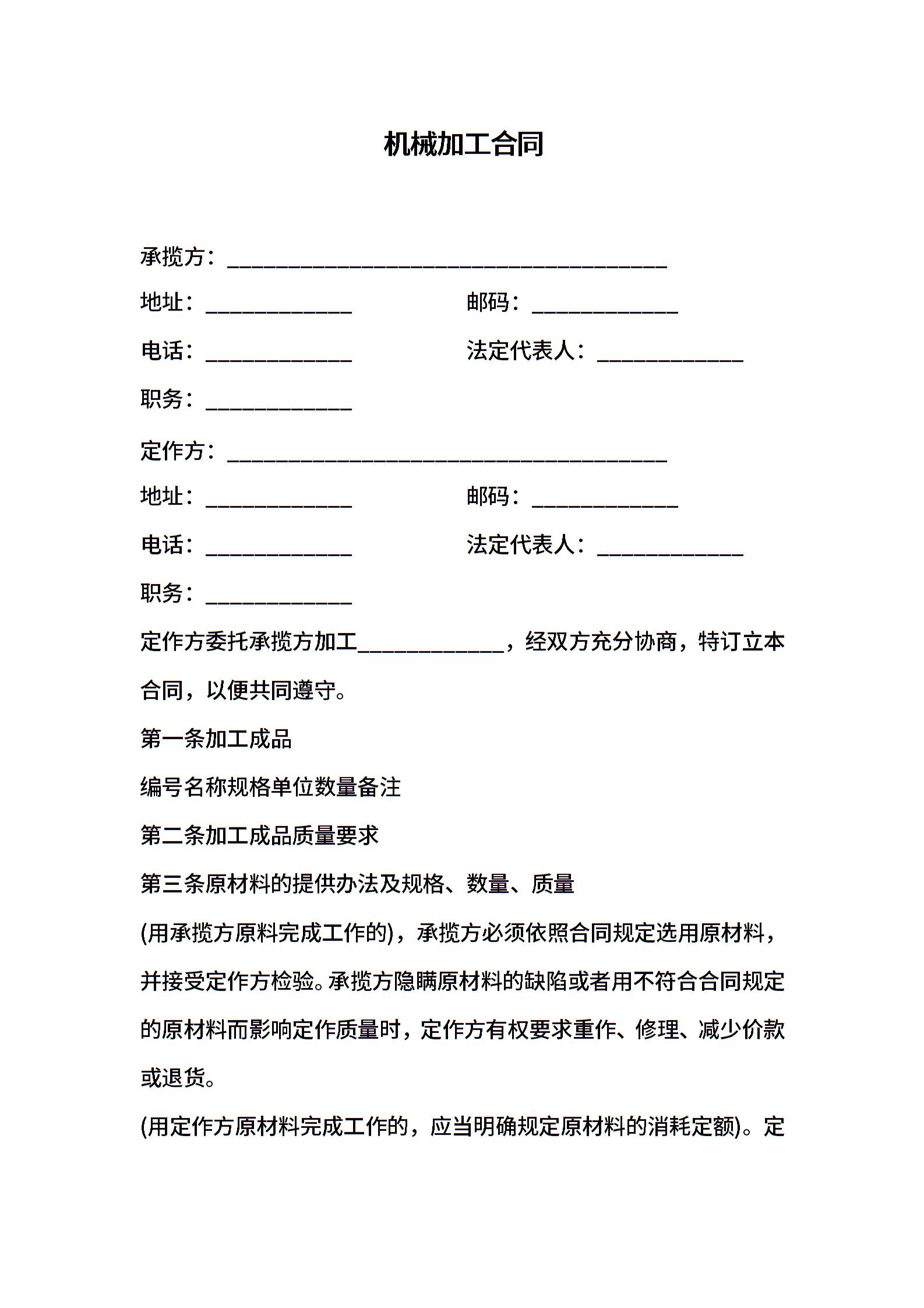 机械加工合同