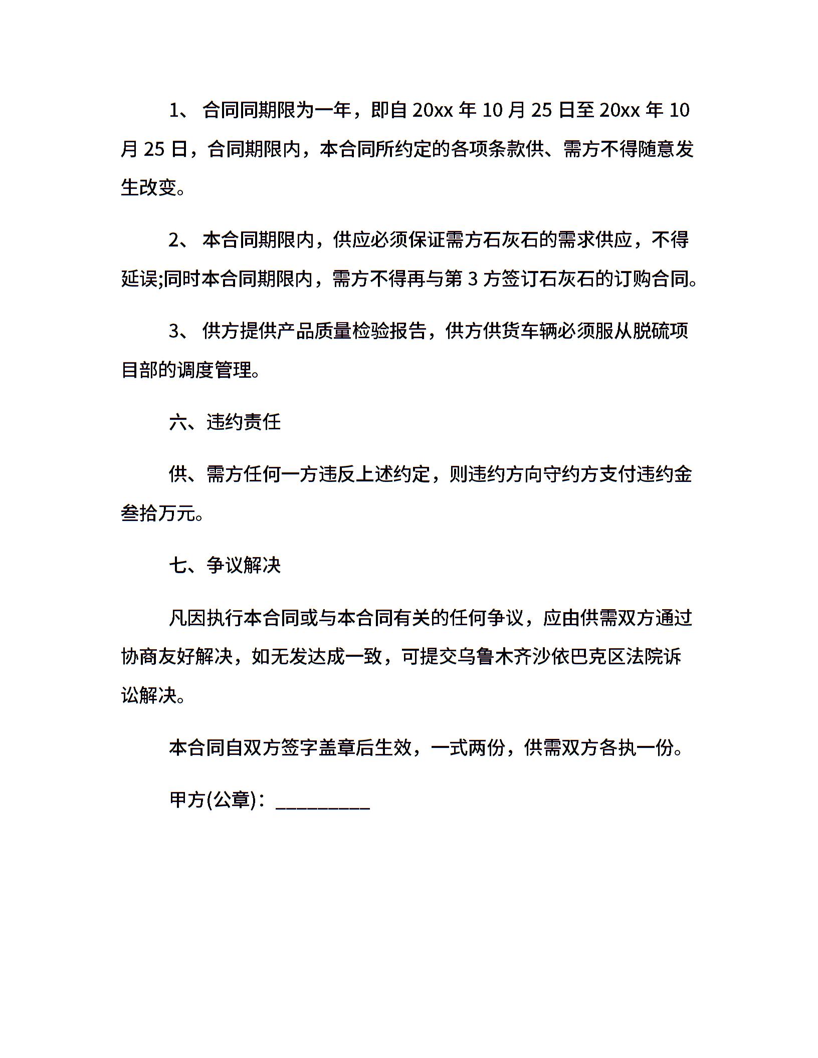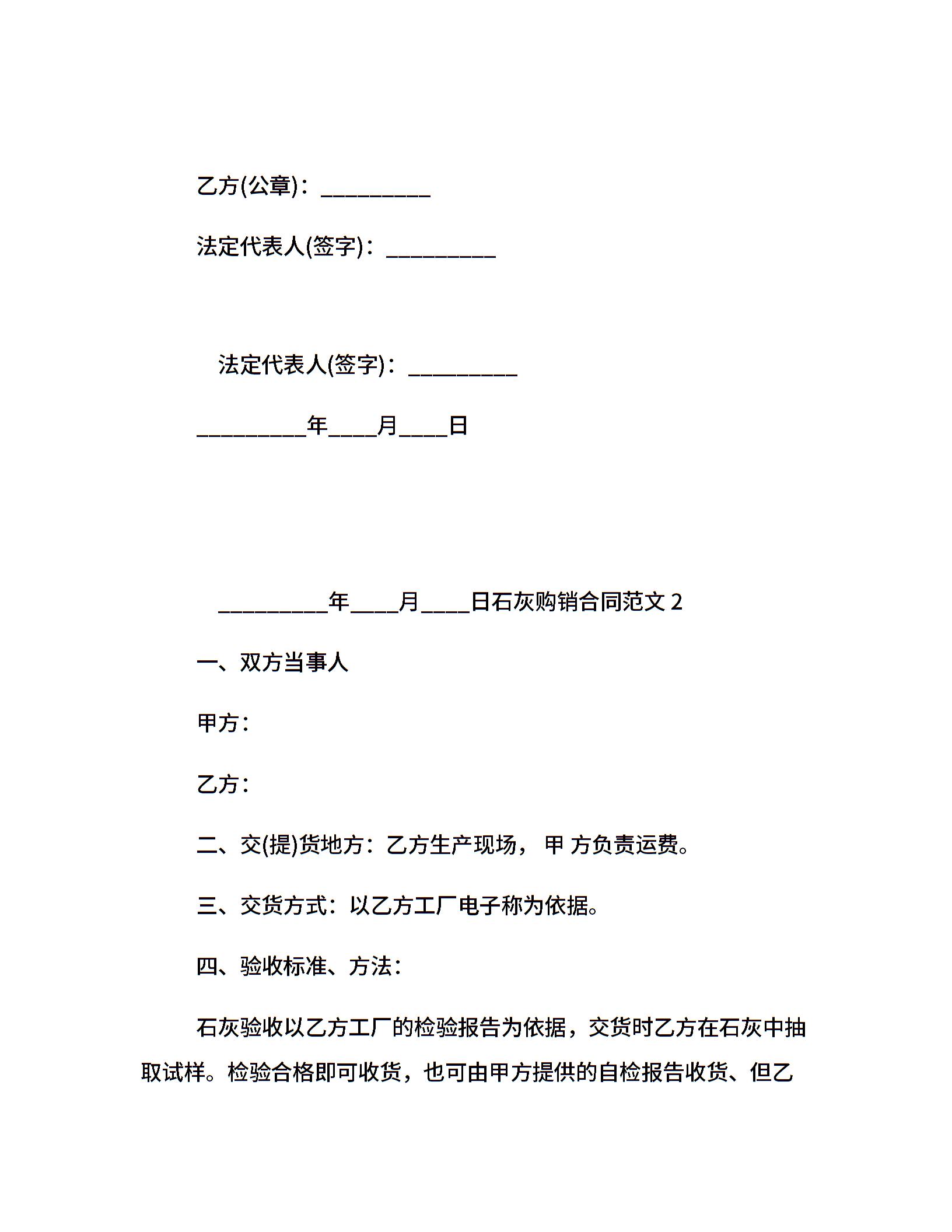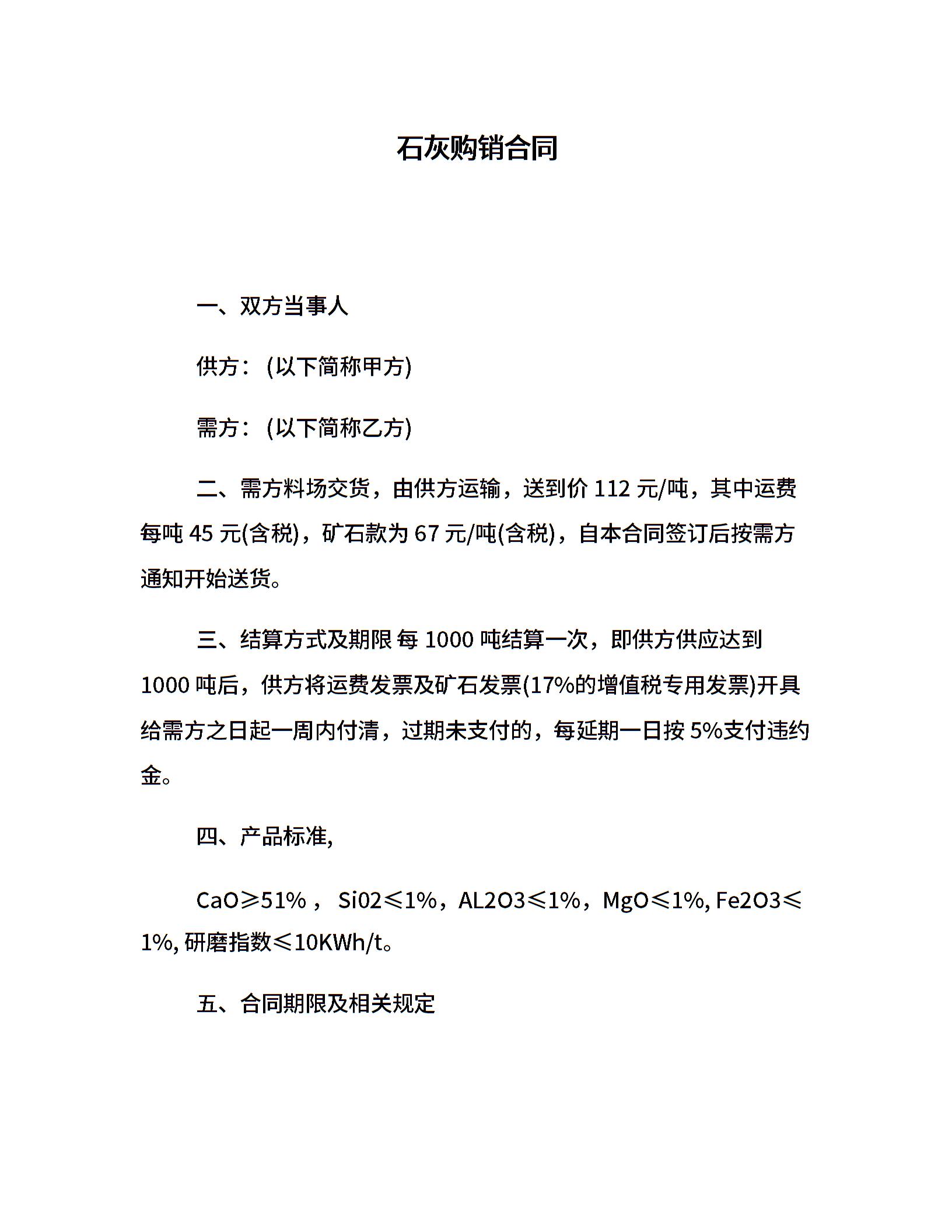 石灰购销合同