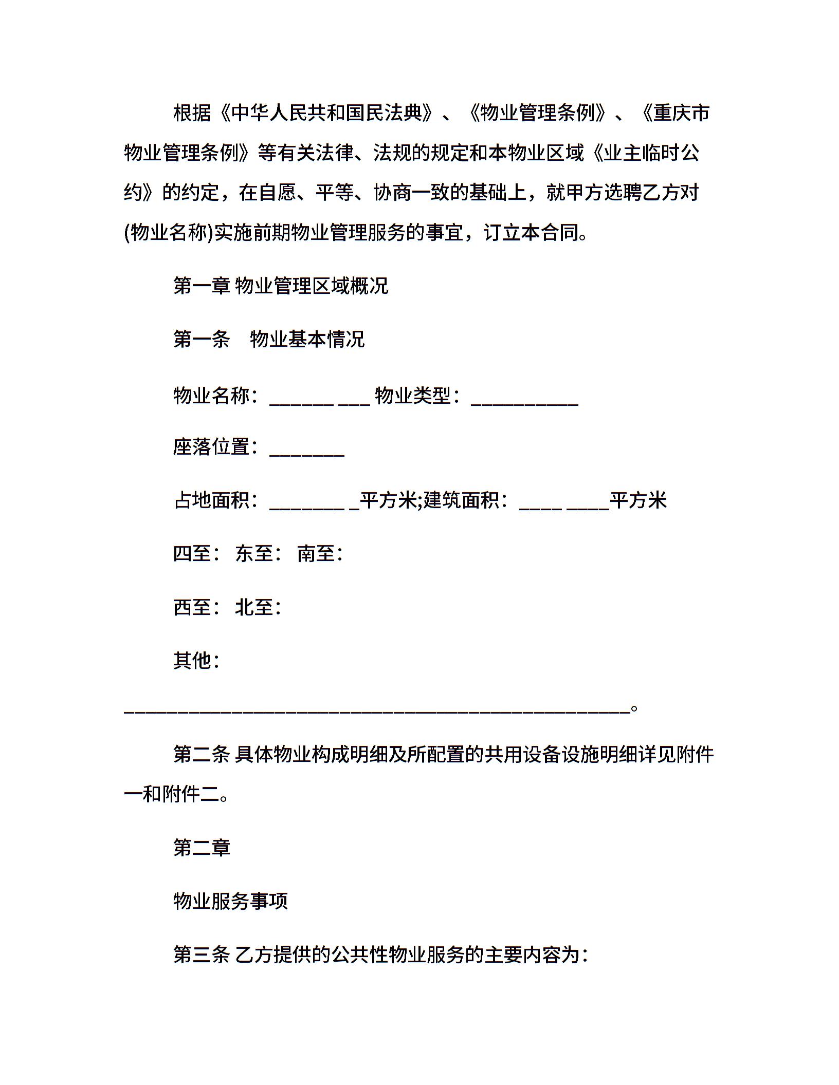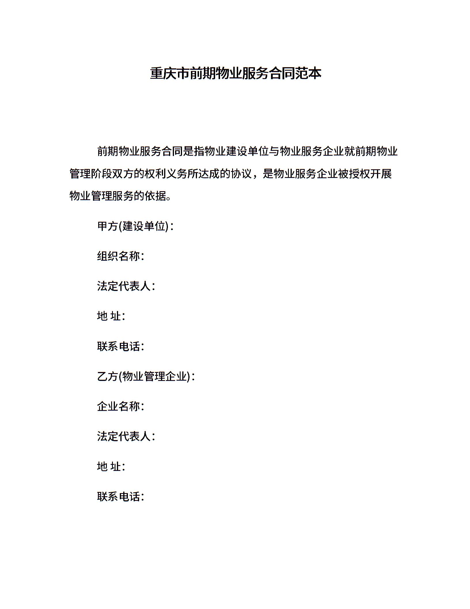 重庆市前期物业服务合同范本