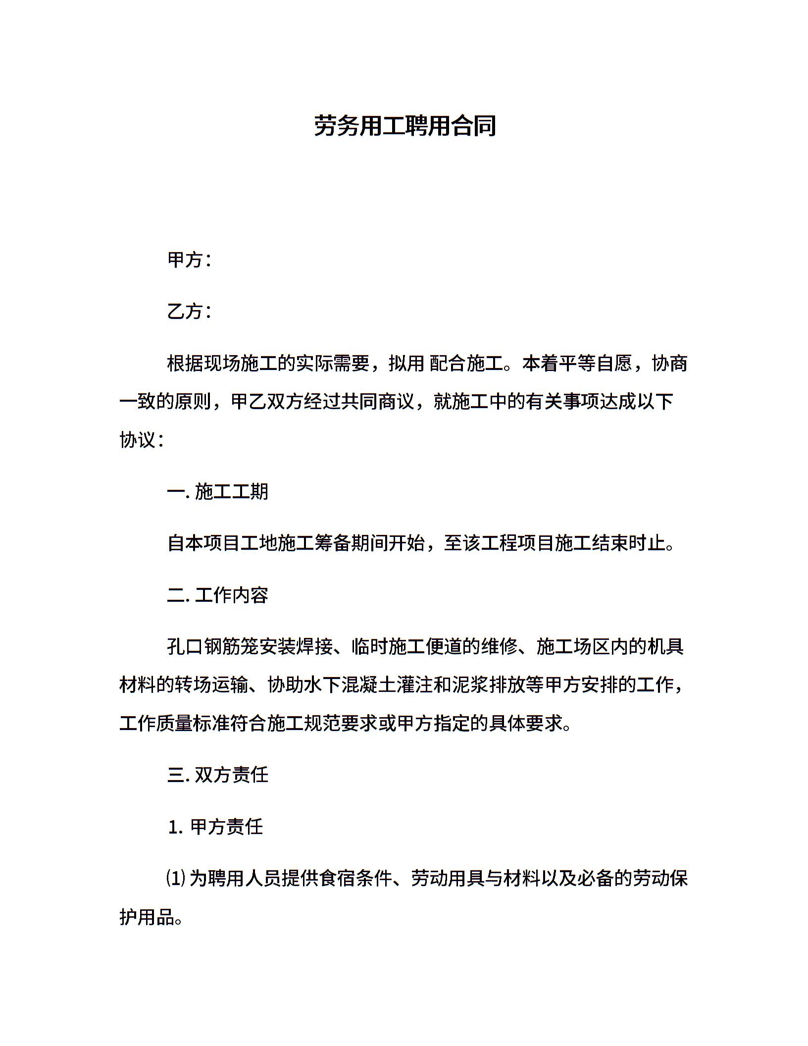 劳务用工聘用合同