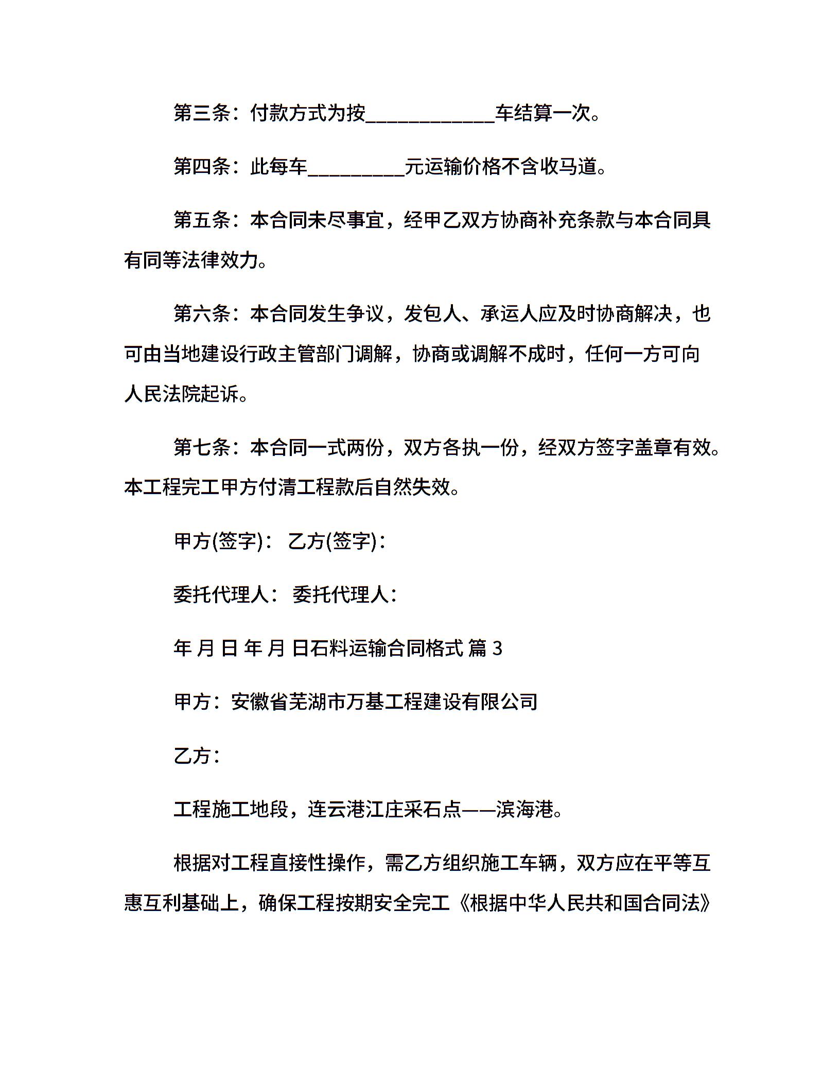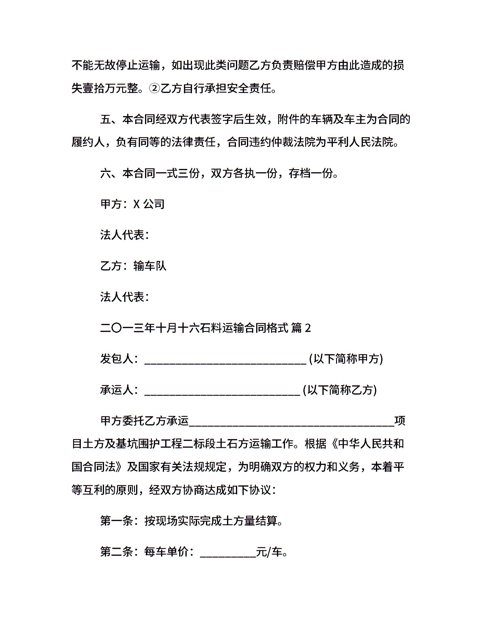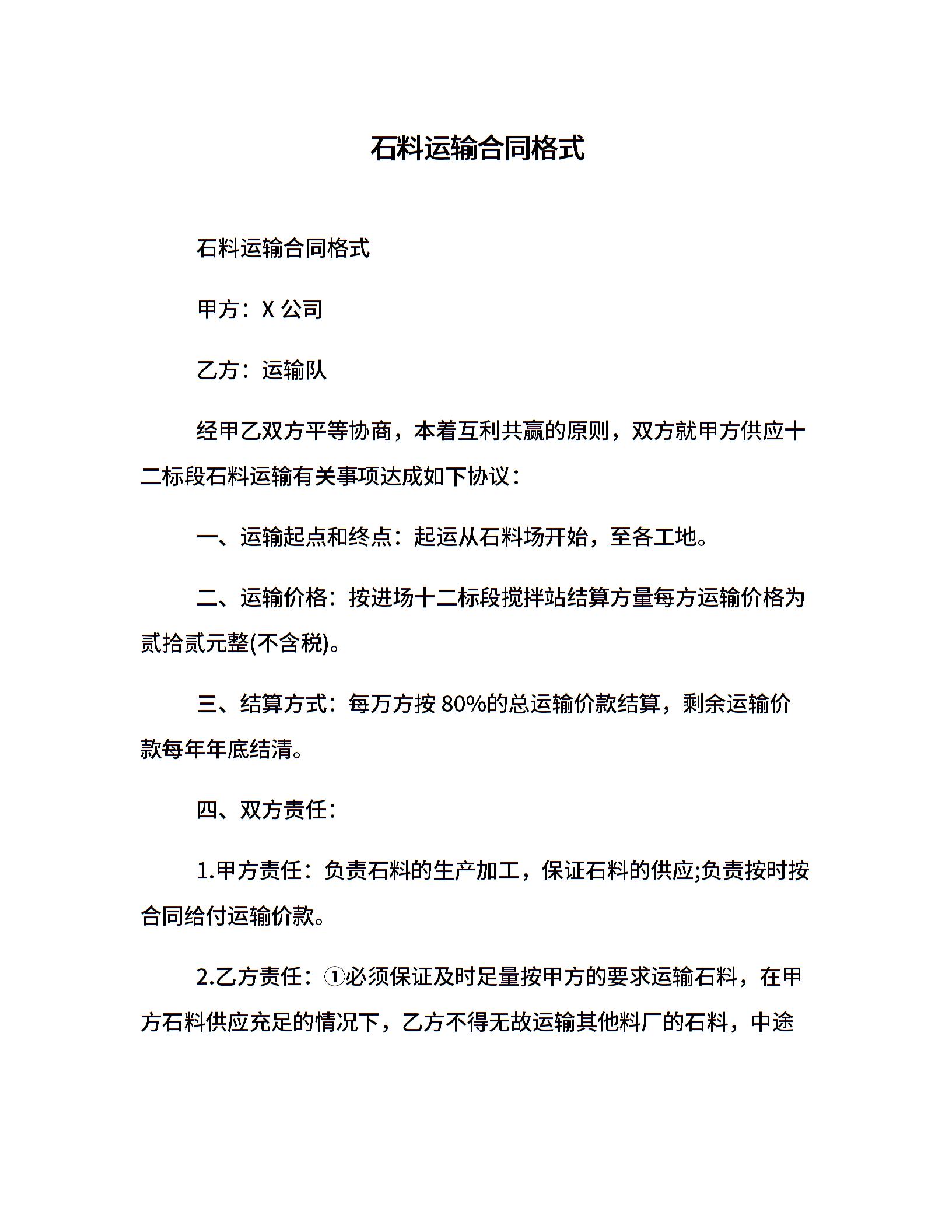 石料运输合同格式