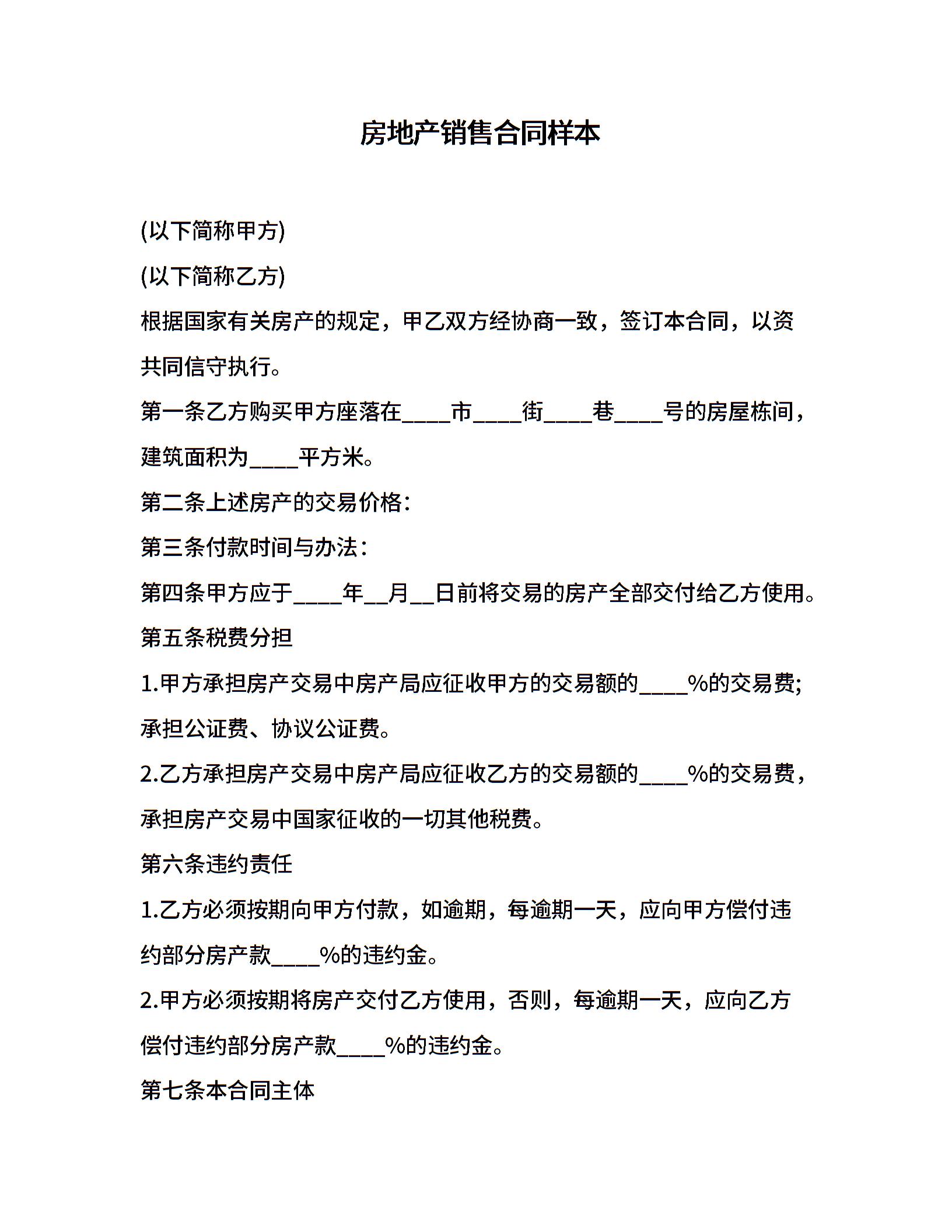 房地产销售合同样本