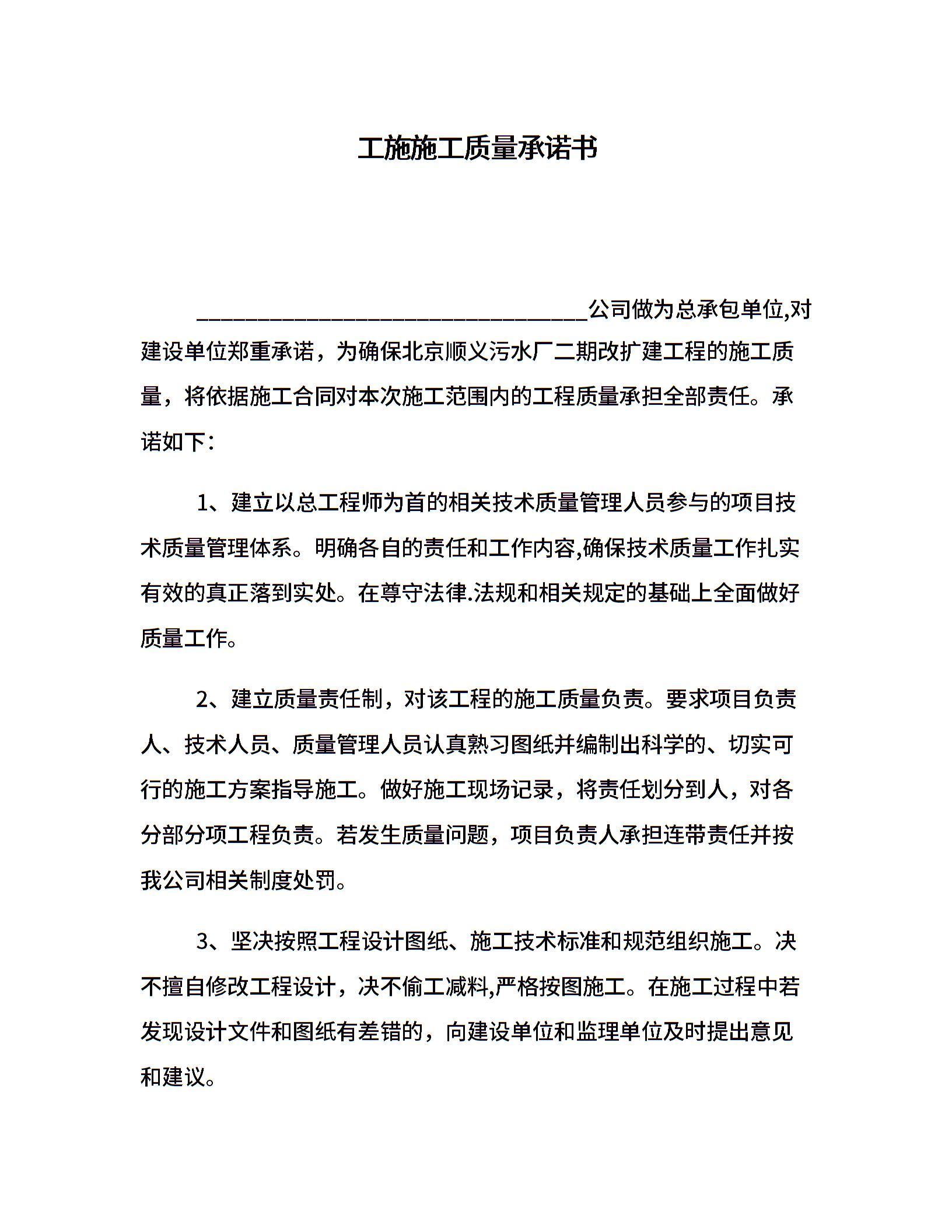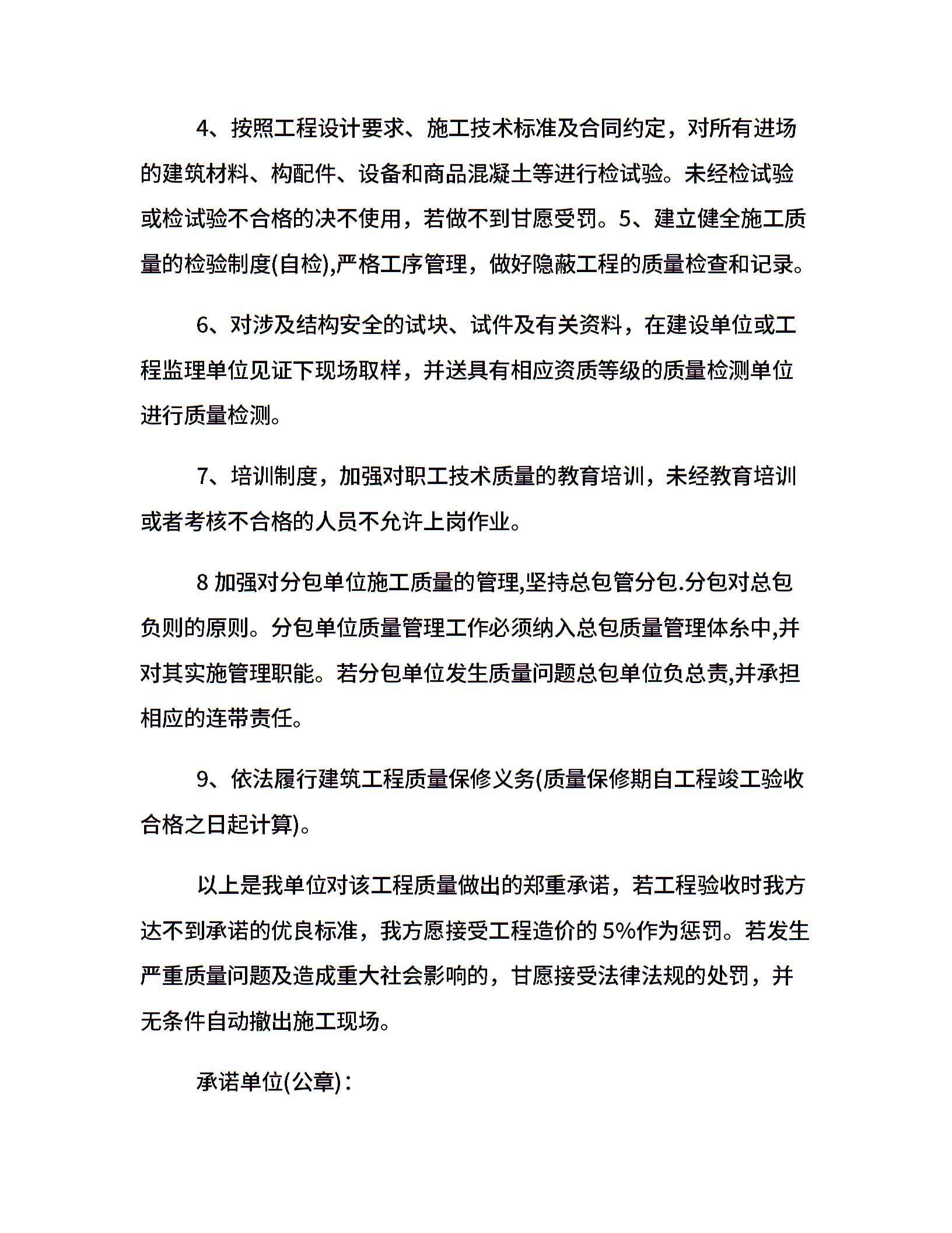 工施施工质量承诺书
