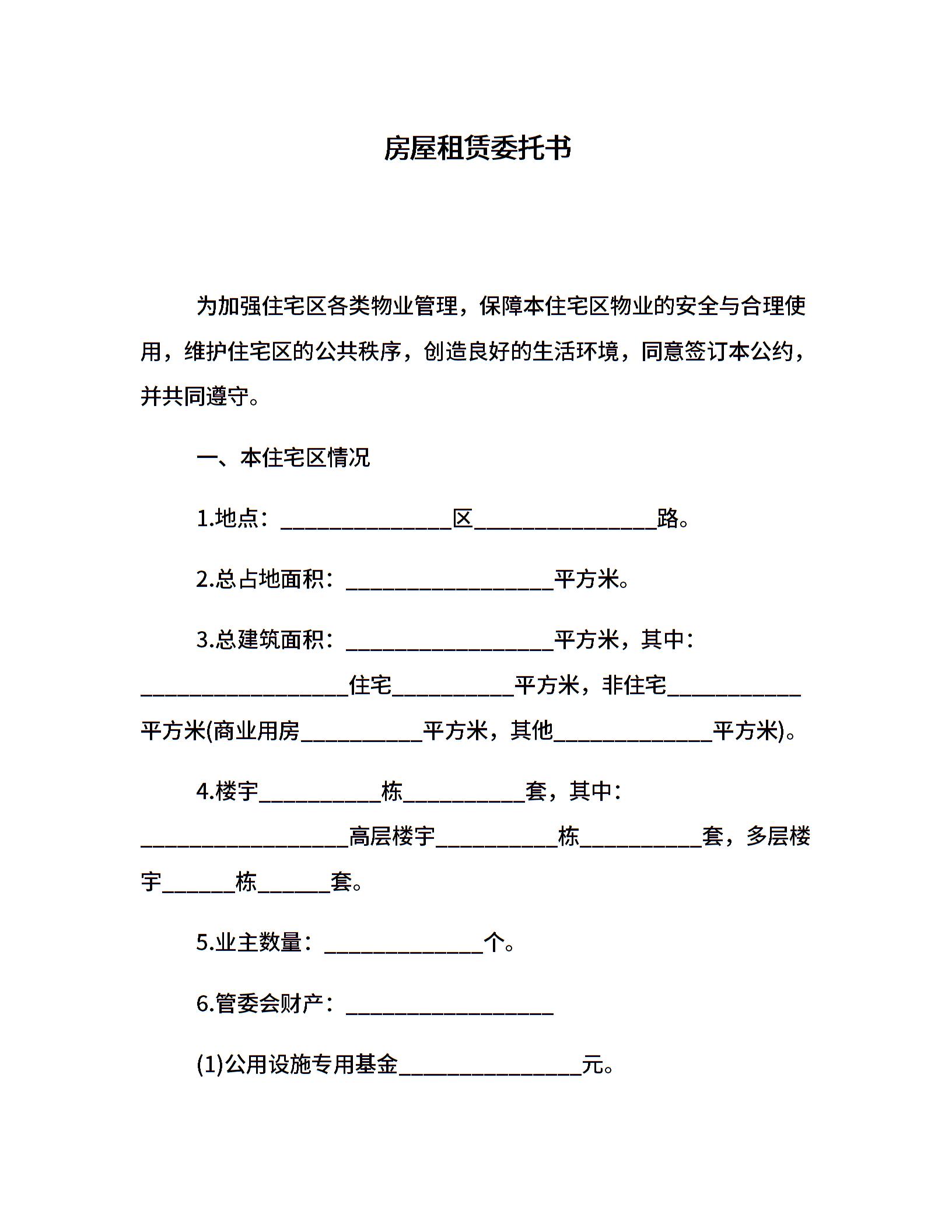 房屋租赁委托书